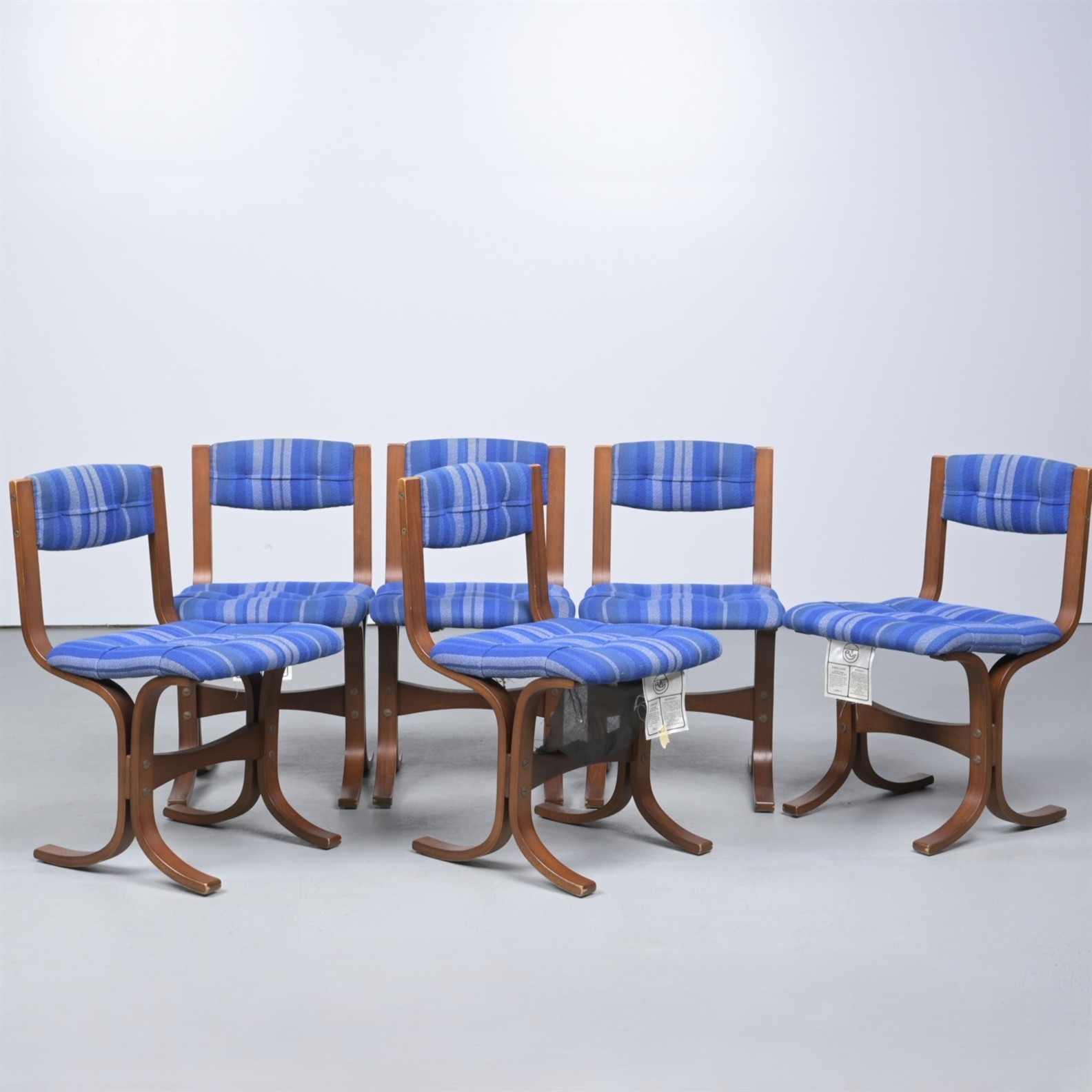 A SET OF SIX MID-20th CENTURY DINING CHAIRS BY DANISH DELUXE (A/F) (80CM H X 87CM W X 55CM D)