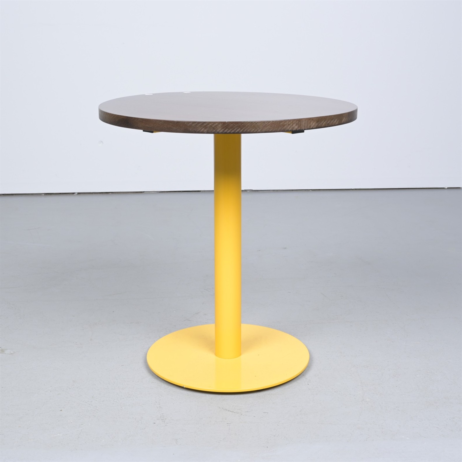 A METAL AND HARDWOOD CIRCULAR TABLE (76CM H X 70CM DIA)
