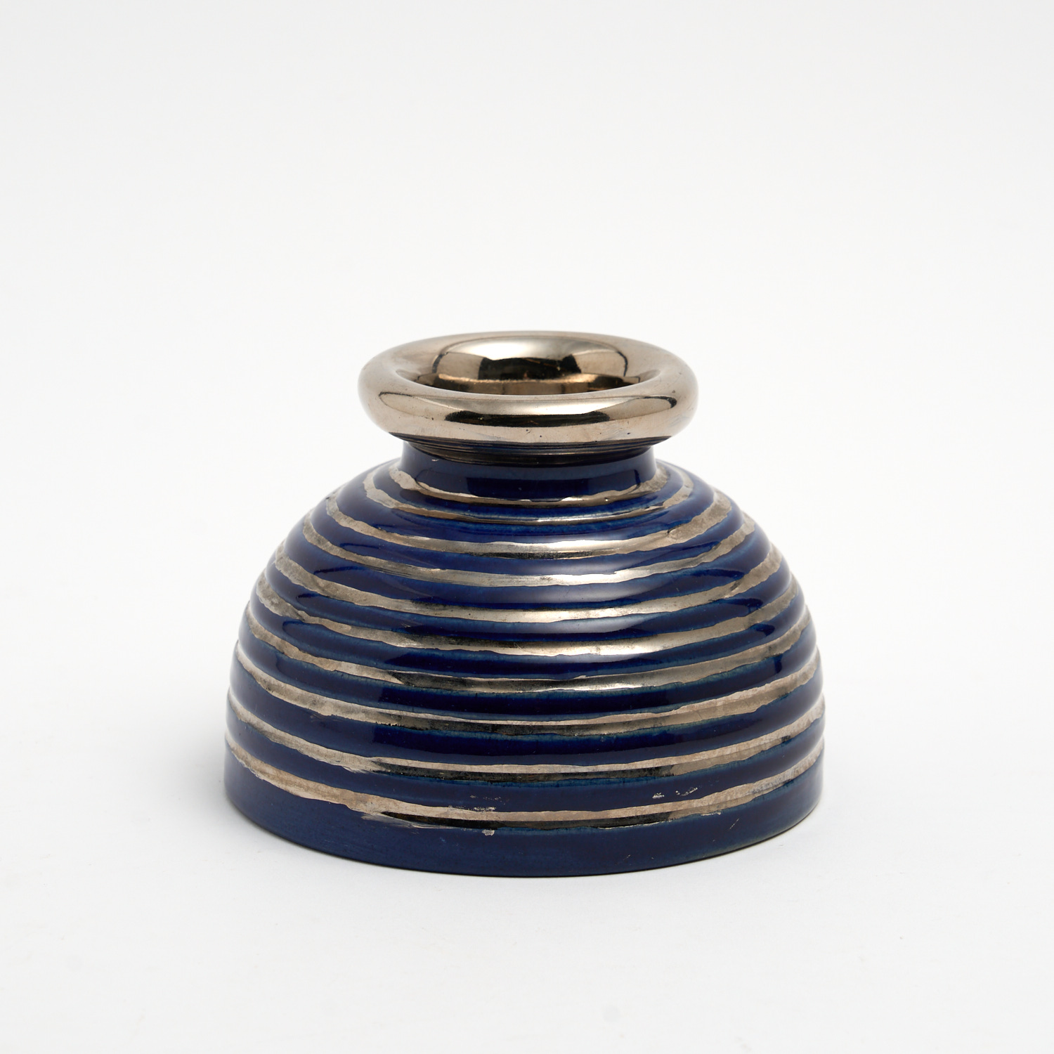 A KLYTIE PATE BLUE STRIPED CERAMIC VASE, INCISED 'KLYTIE PATE' TO BASE H.15CM