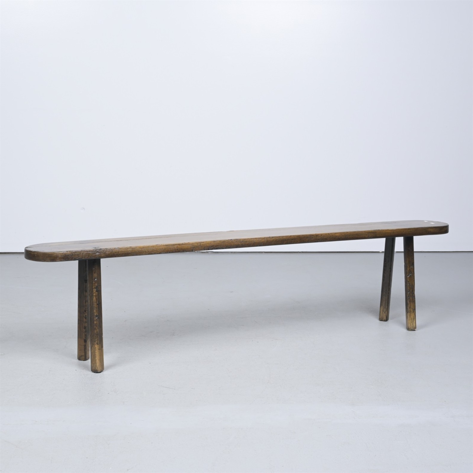 AN OAK BENCH SEAT IN 18th CENTURY PROVINCIAL STYLE (45CM H X 183CM W X 23CM D)