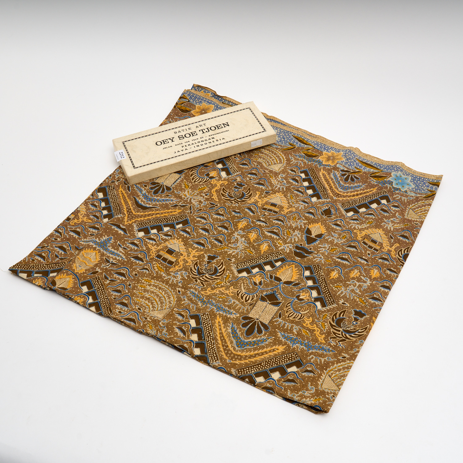 A MUSEUM QUALITY INDONESIAN BATIK BY OEY SOE TJOEN (1901-1975), (BROWN PATTERN) 241G 1M X 2M, SIGNED/STAMPED