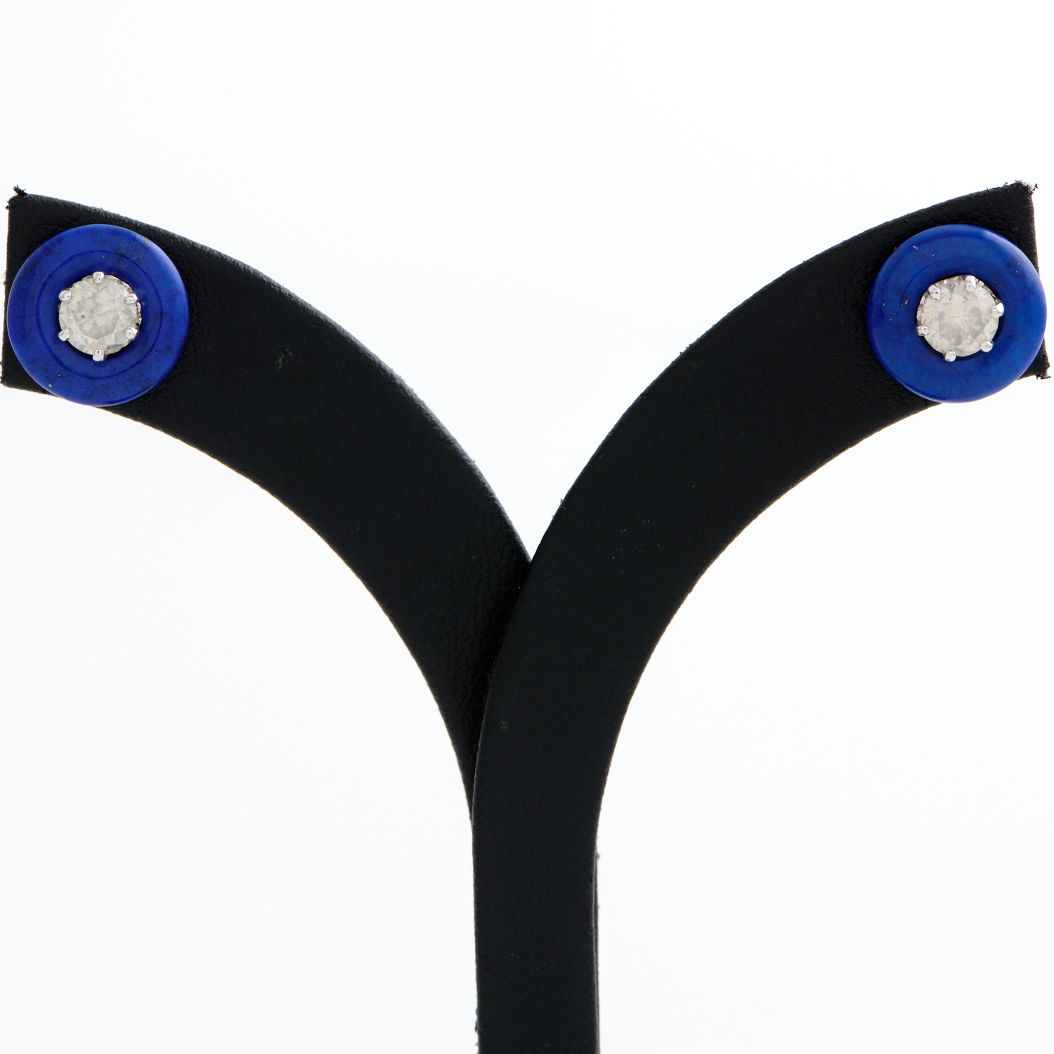 A PAIR OF DIAMOND STUD EARRINGS IN 18CT WHITE GOLD, TO POST AND BUTTERFLY FITTINGS, CONVERTIBLE WITH LAPIS LAZULI HALOS, THE DIAMONDS TOTALLING 1.30CT, TOTAL WEIGHT 2.4GMS