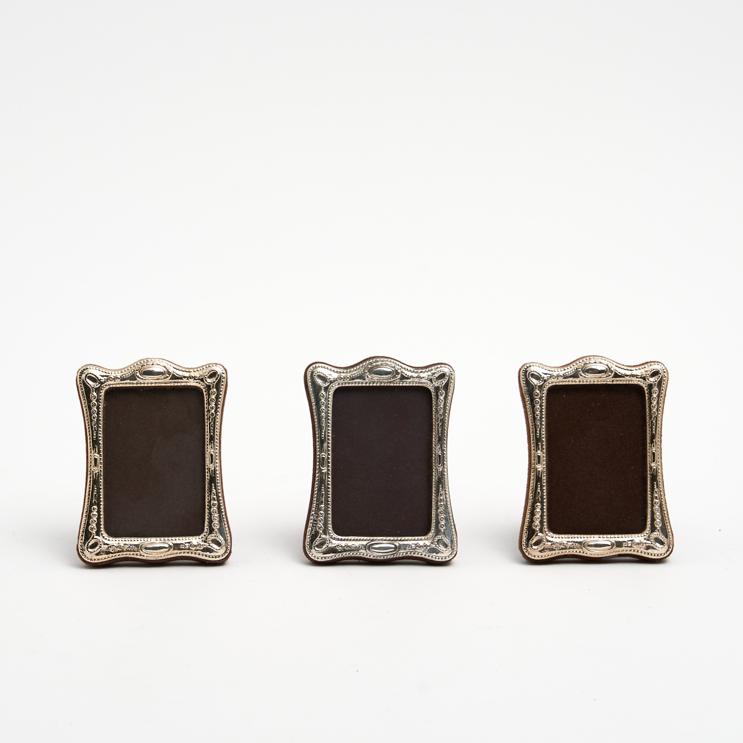 A TRIO OF ITALIAN 925 SILVER ART NOUVEAU DECORATED MINIATURE PHOTO FRAMES, WITH ORIGINAL BOXES 9.5 X 5.5CM