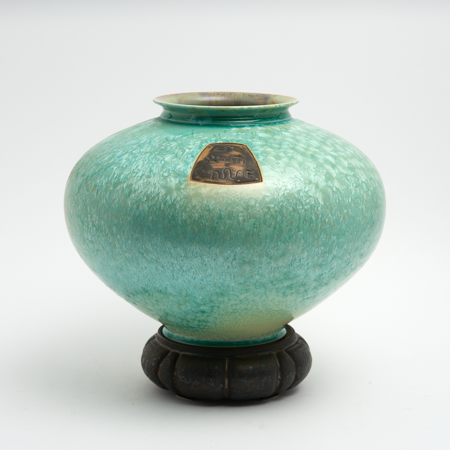 AN AUSTRALIAN MID-CENTURY CRYSTALLINE GLAZE VASE BY DAVID OSWALD H.31CM