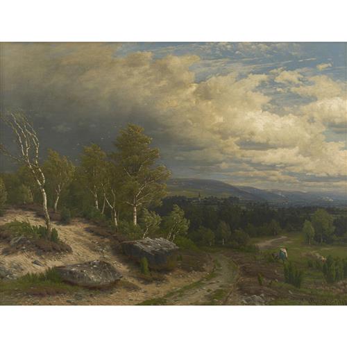 Nicholas Chevalier was presumably a fascinating character, fluent in several languages, well-travelled, connected and an extraordinary painter. His painting 'The Buffalo Ranges, Victoria' was the first ever locally produced painting to be acquired by the National Gallery of Victoria (1865). Works by the artist are rare to come to auction and 'Tilling Fields before the Storm' 1886 (also known as 'Storm Clouds Over the Ruhr Valley') was "Chevalier's last known original landscape subject" (1) and it is an extraordinary example of his ability to capture atmosphere.
