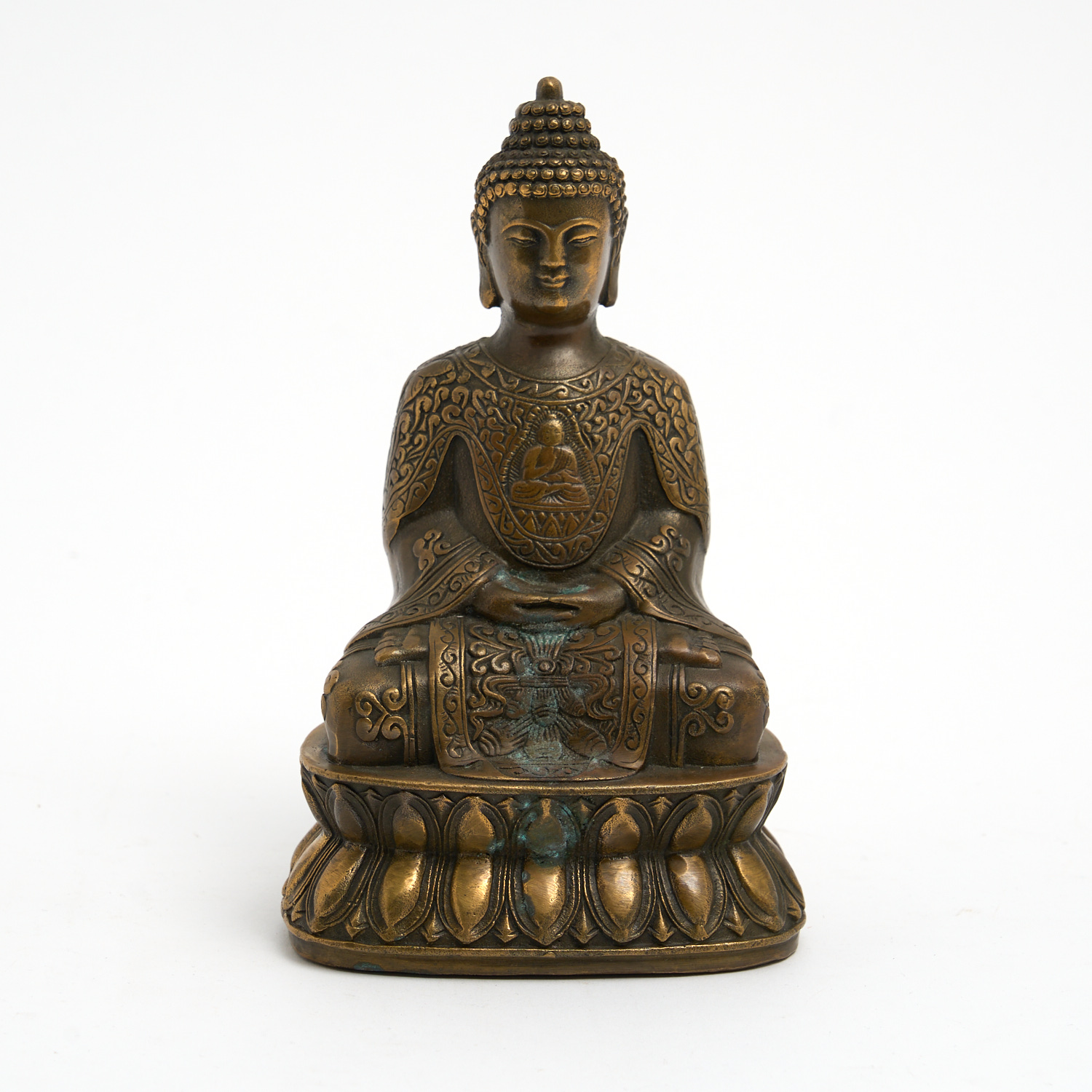 A TIBETAN BRONZE SEATED BUDDHA, EARLY 20TH CENTURY H.17CM
