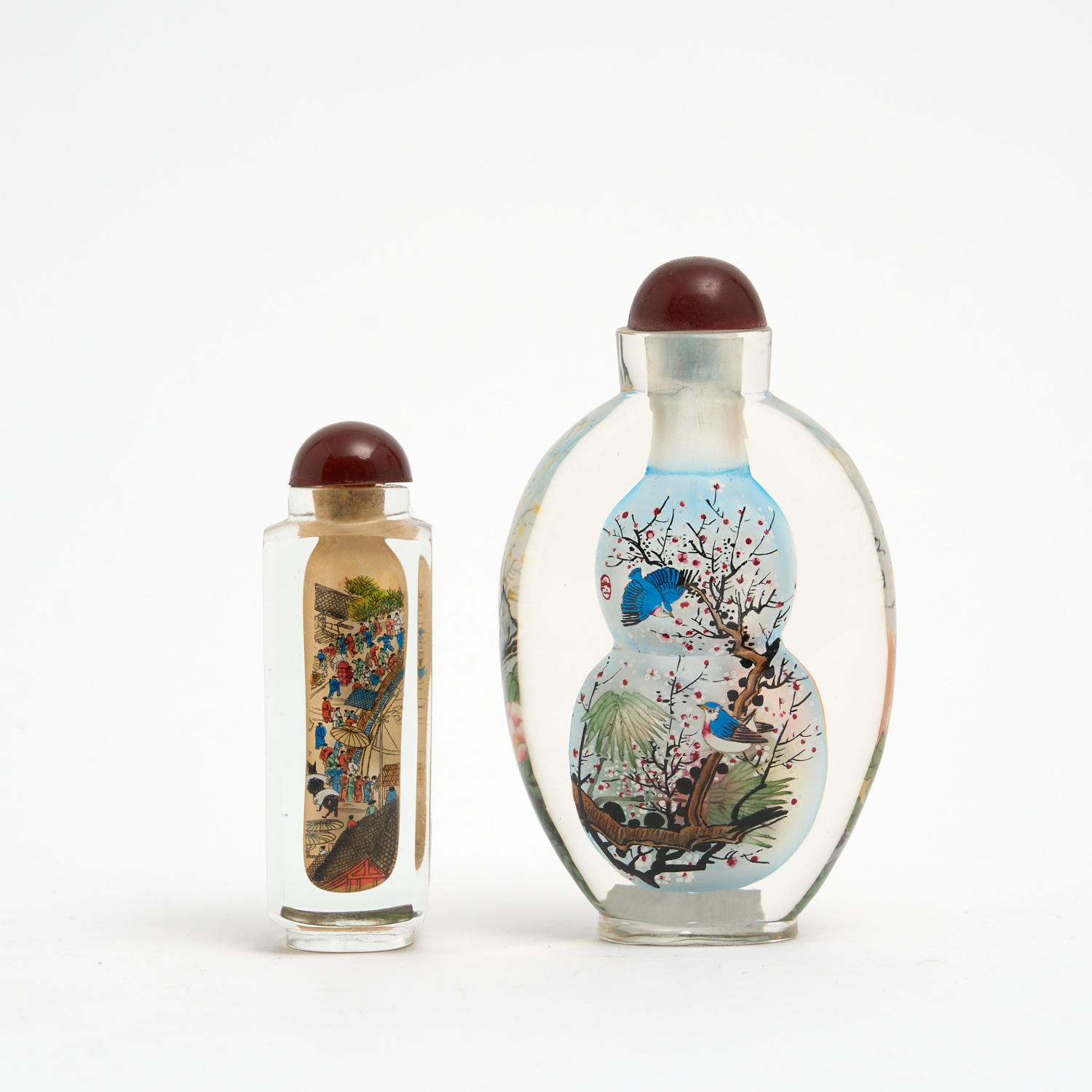 TWO CHINESE INSIDE PAINTED BOTTLES H.12CM