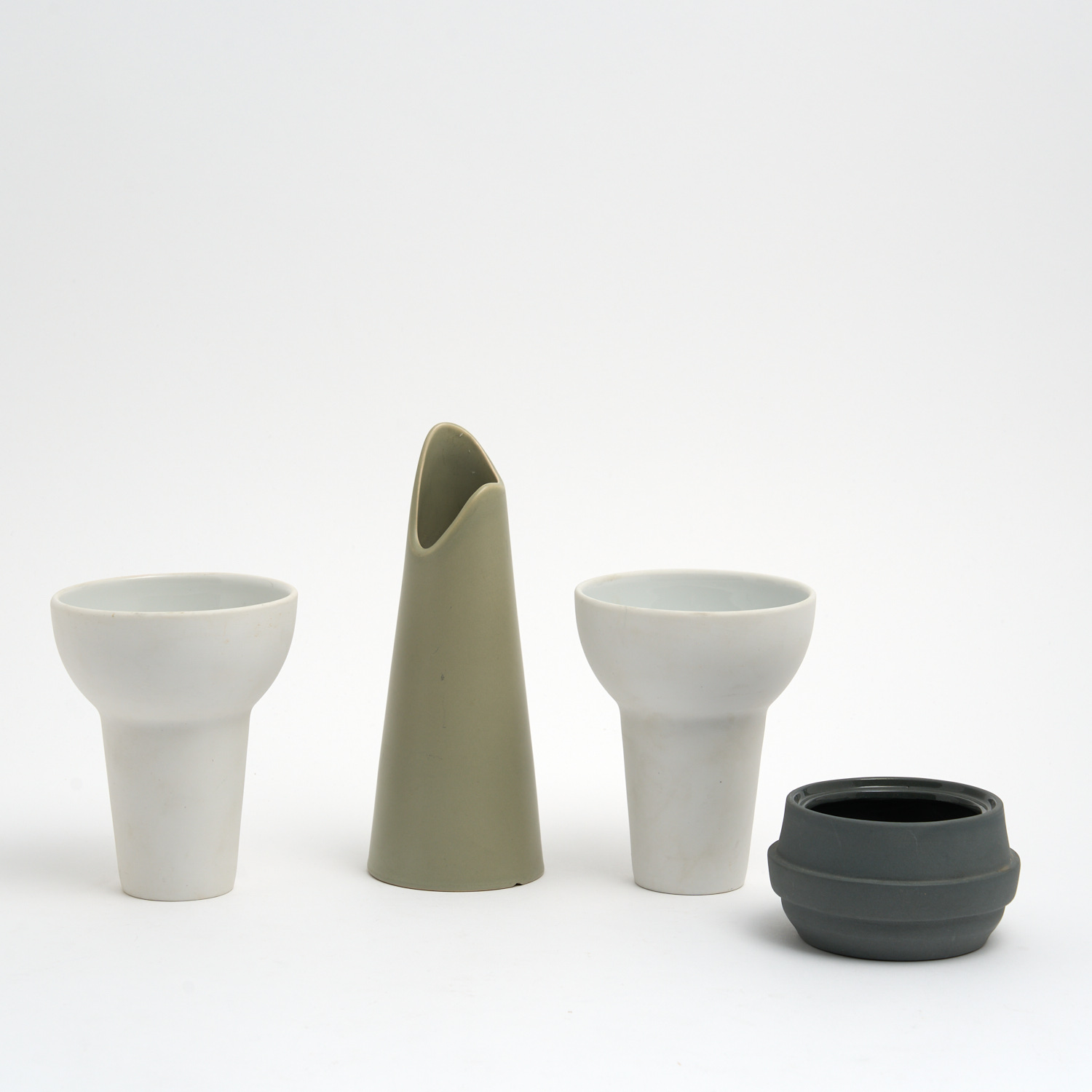 A GROUP OF MODERN DANISH CERAMIC BOWLS AND VASES INCLUDING MUUTO AND WOUD H.20CM (TALLEST)