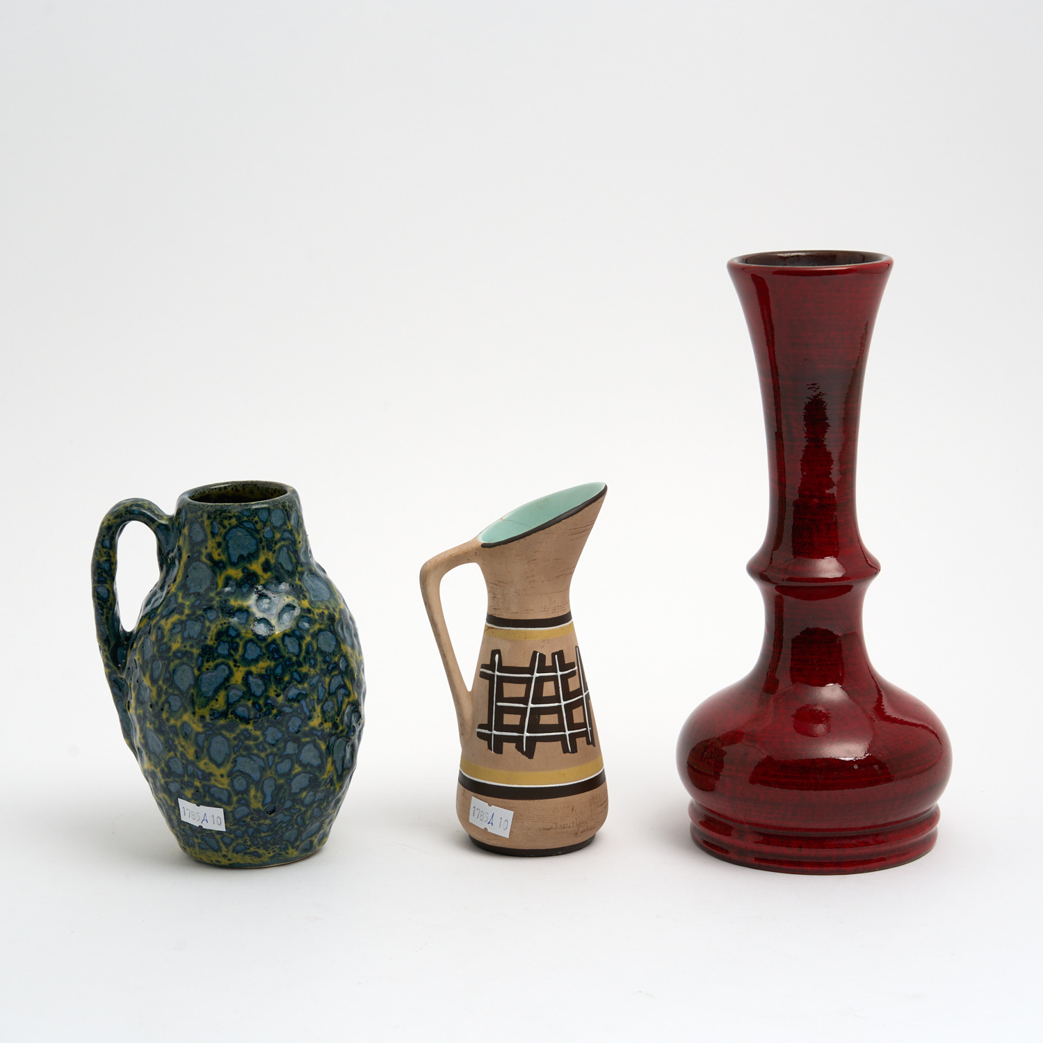 THREE PIECES OF MID-CENTURY WEST GERMAN POTTERY H.26CM (TALLEST)