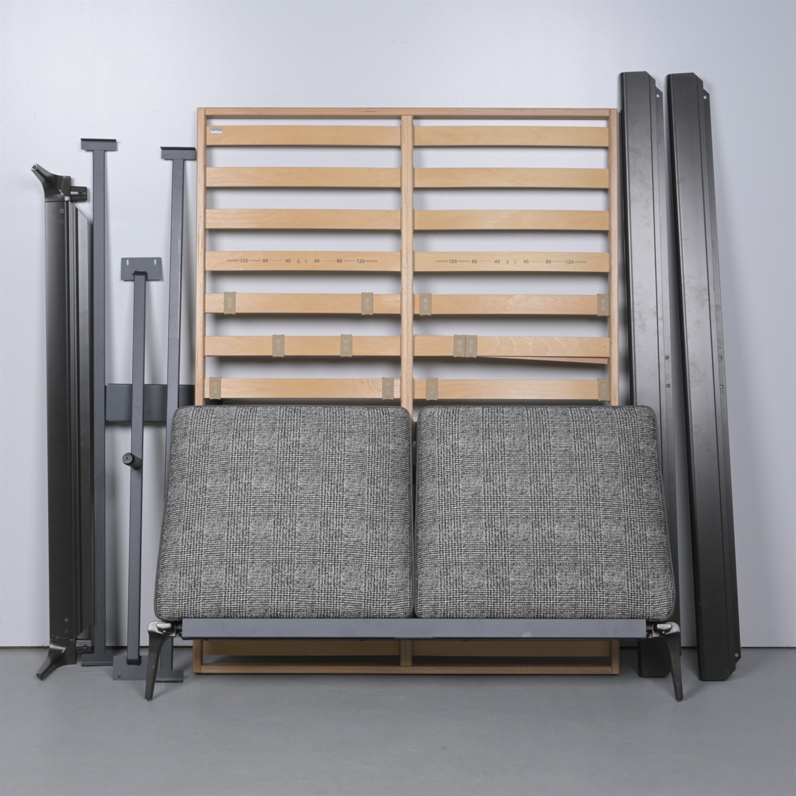 A POLIFORM PARK 1 BED FRAME DESIGNED BY CARLO COLOMBO WITH MATT PAINTED BROWN NICKEL LEGS (95CM H X 171CM W X 225CM D) (THIS ITEM MUST BE REMOVED BY PROFESSIONAL CARRIERS OR CLIENTS. LEONARD JOEL STAFF CANNOT ASSIST WITH CARRYING OR DELIVERY OF THIS ITEM)