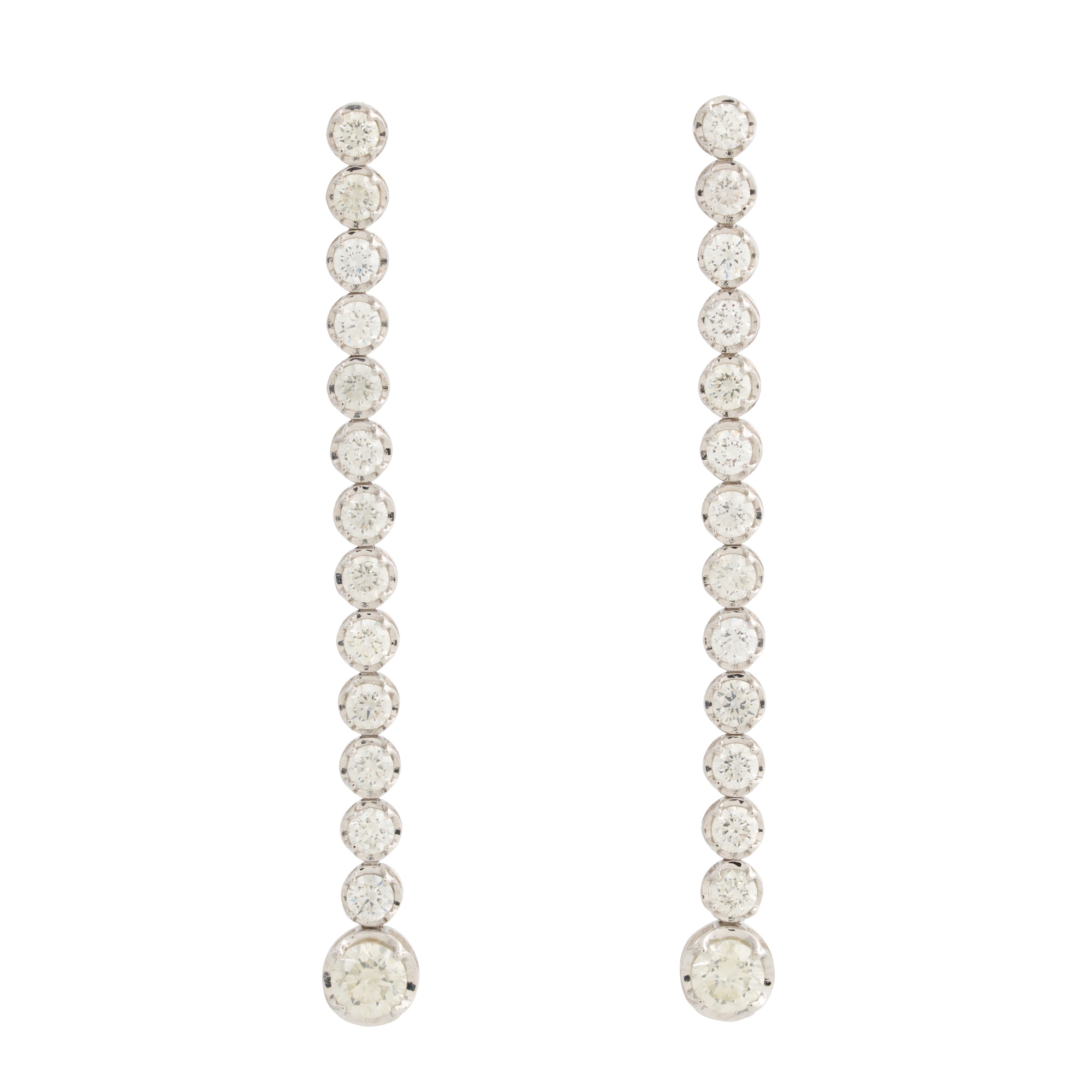 Each earring modelled as a line of claw-set round brilliant-cut diamonds, the diamonds together weighing approximately 2.80 carats, to post and butterfly fittings, length 55mm, gross weight approximately 3.15 grams.