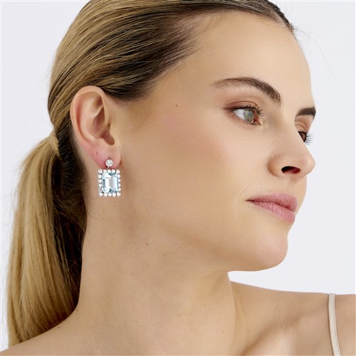 PAIR OF 14CT WHITE GOLD, AQUAMARINE AND DIAMOND EARRINGS