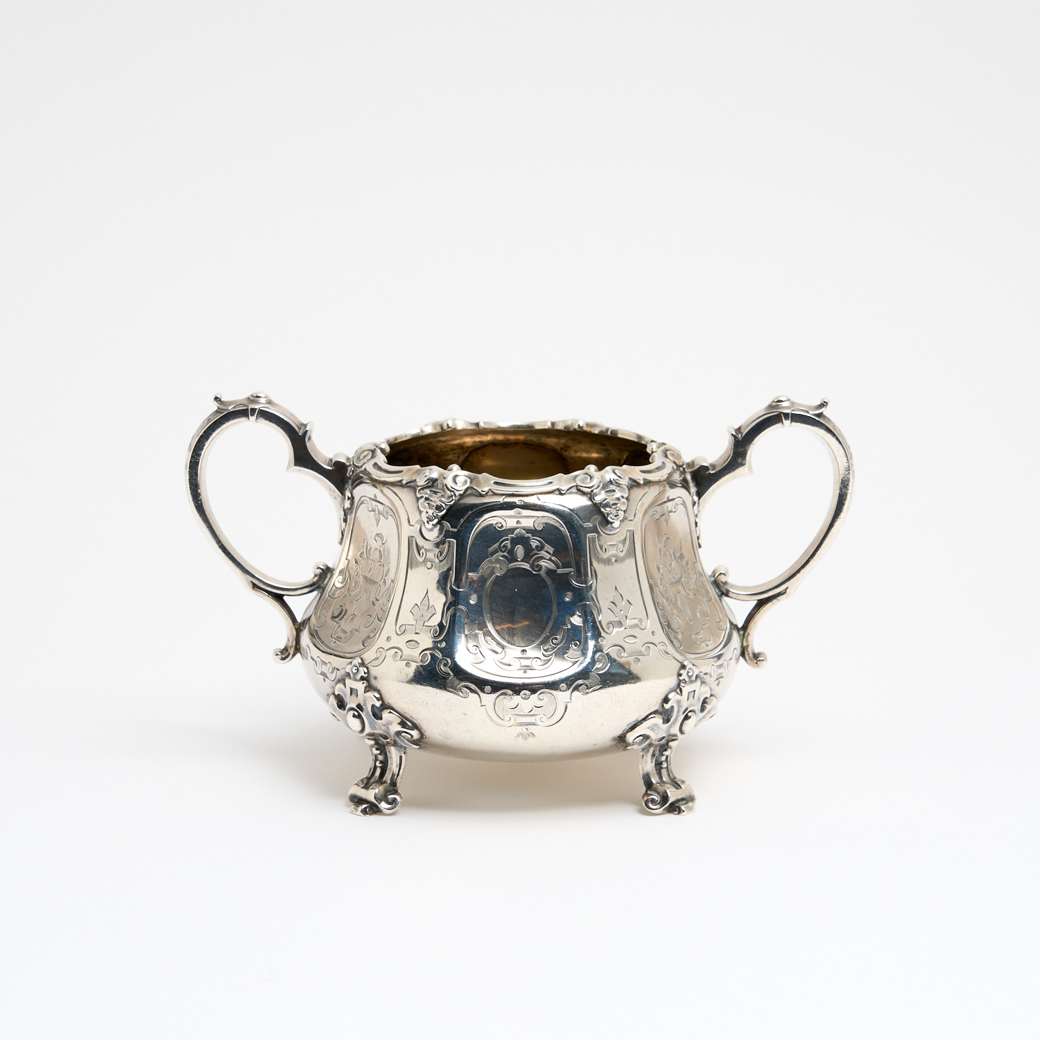 A VICTORIAN STERLING SILVER SUGAR BASIN, EDWARD & JOHN BARNARD, LONDON, 1853, 453G L.21CM