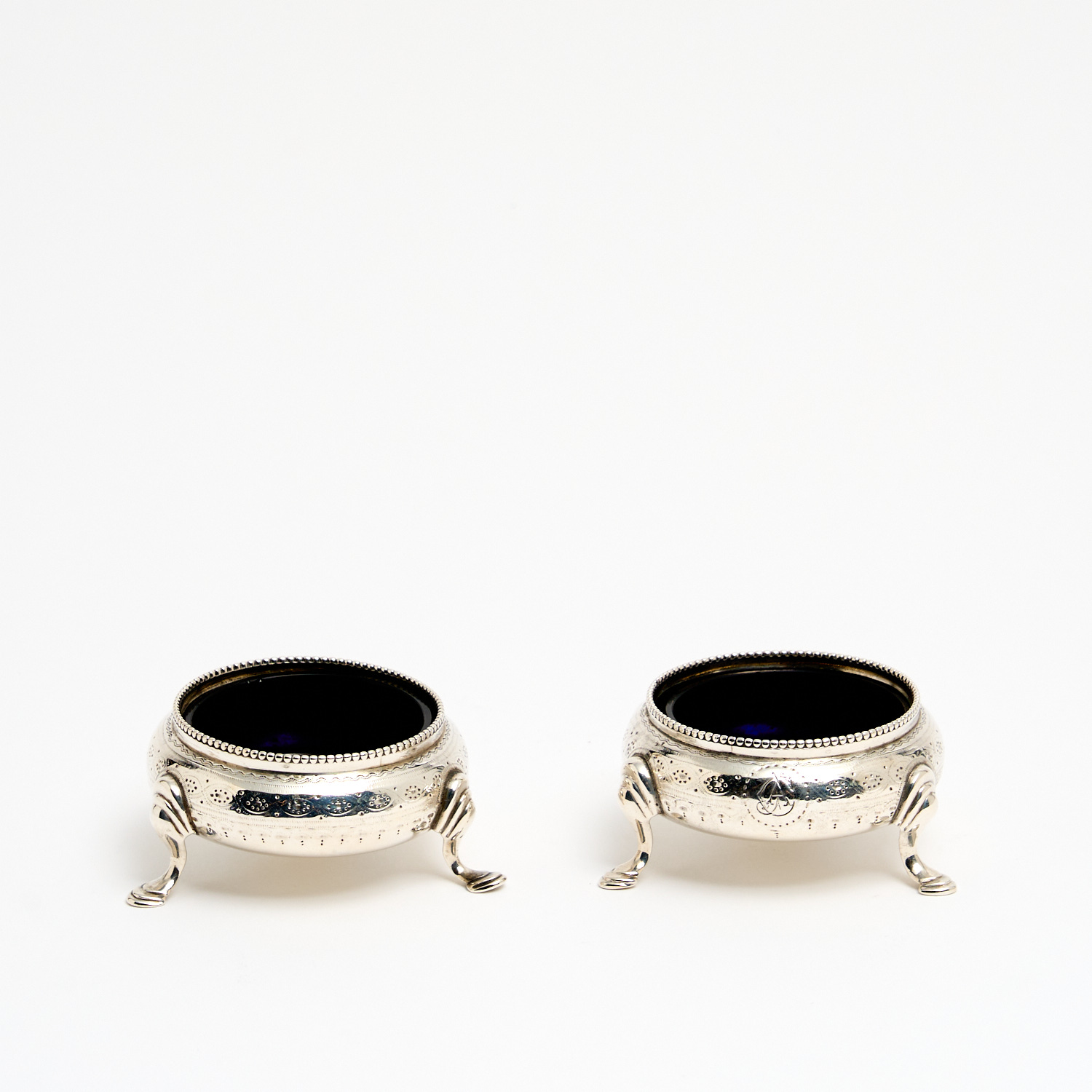 A PAIR OF VICTORIAN STERLING SILVER SALT CELLARS, HENRY HOLLAND, LONDON, 1868, 96G (EXCLUDING GLASS LINERS) DIA.6.5CM