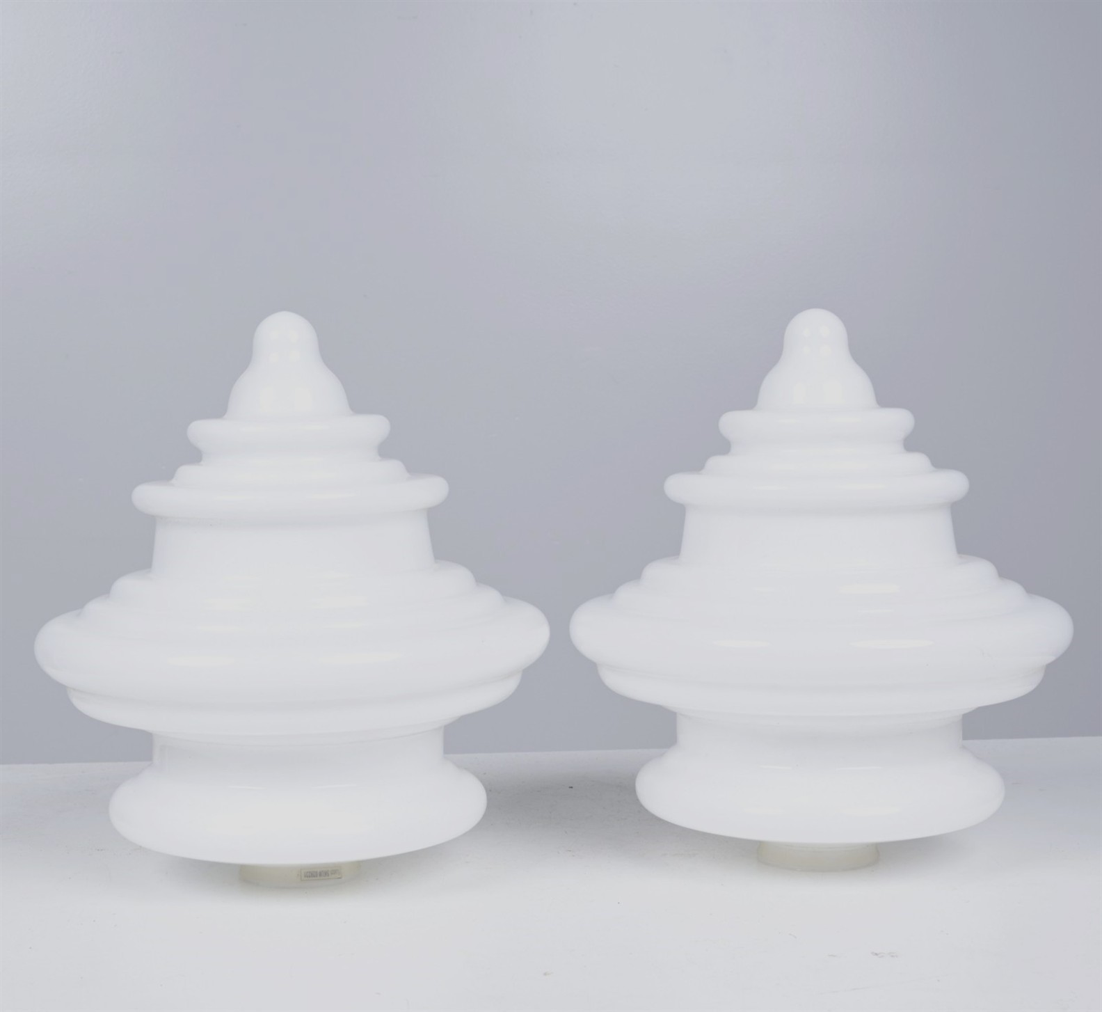 TWO LARGE ART DECO GLASS SHADES (39CM H X 36CM DIA)