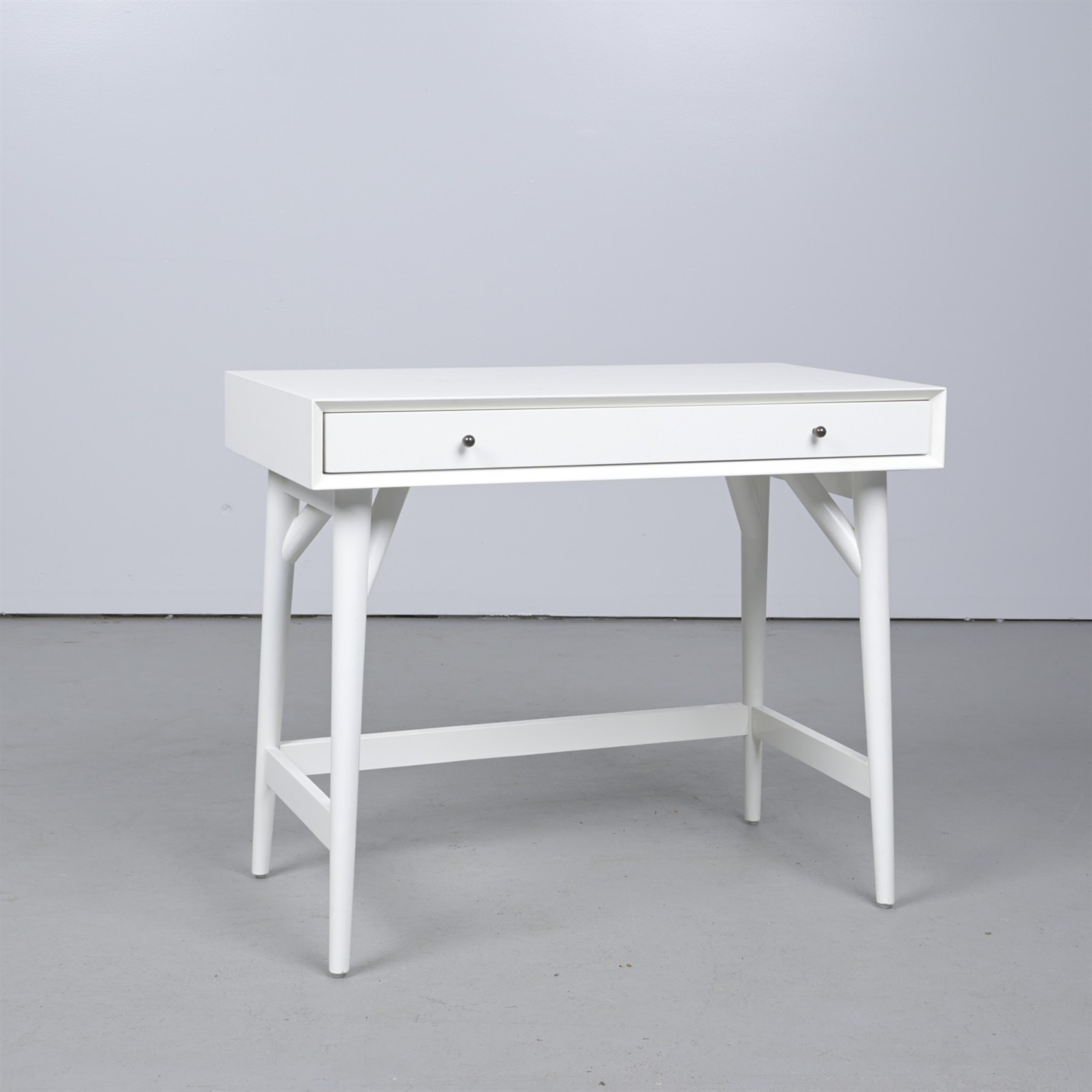 A WHITE-PAINTED DESK BY WEST ELM (77CM H X 91CM W X 51CM D)