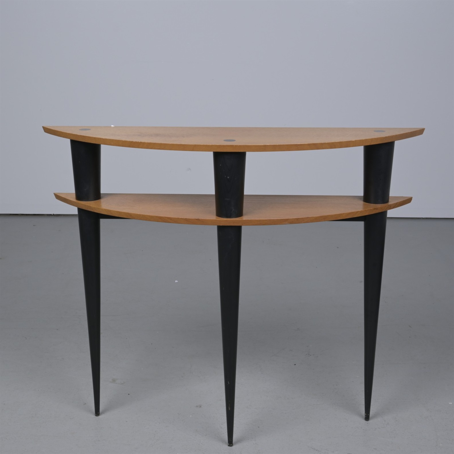 AN AUSTRALIAN SILKY OAK DEMI-LUNE SIDE TABLE (91H X 112W X 30D CM)