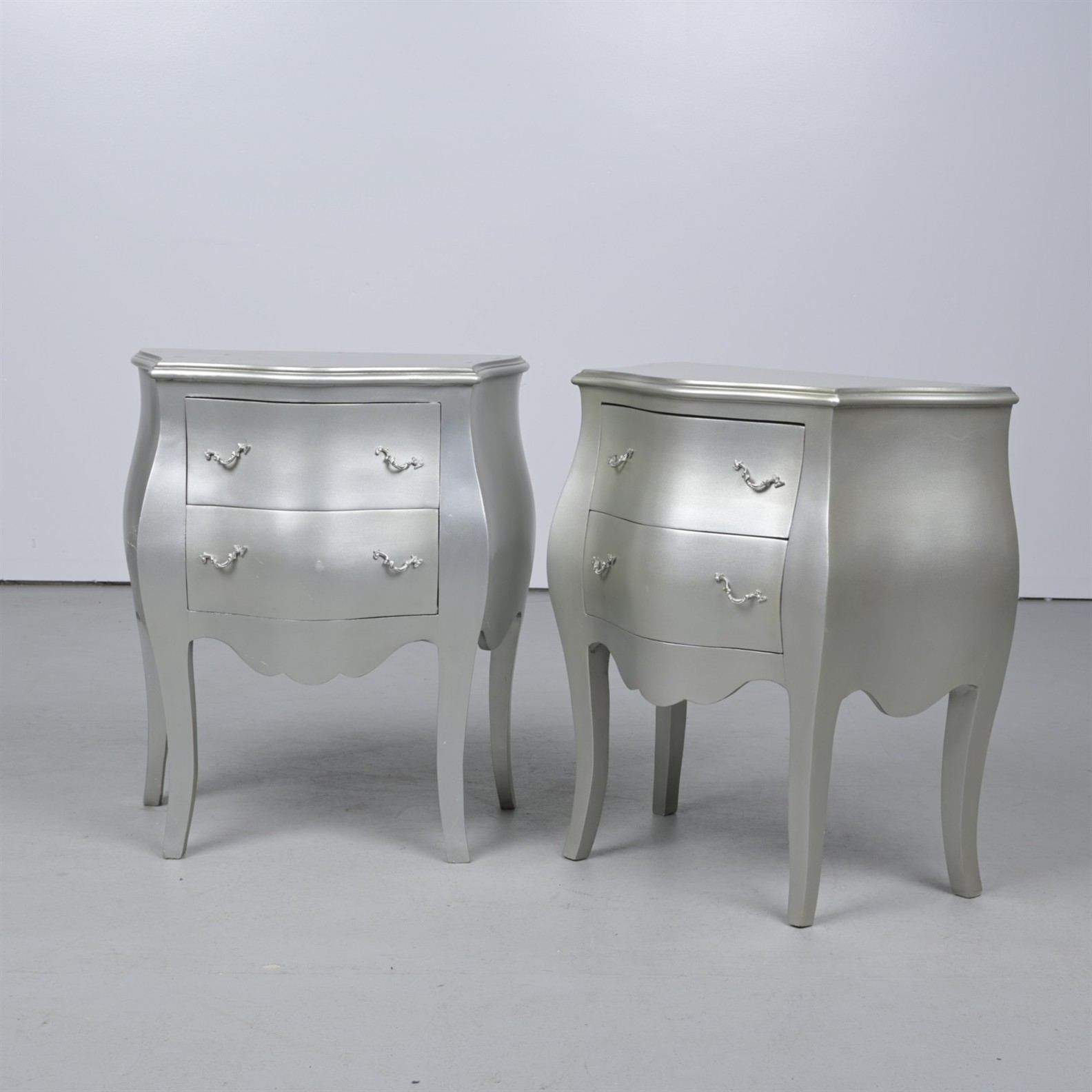 A PAIR OF LOUIS XV-STYLE PAINTED BEDSIDE TABLES (72CM H X 65CM W X 38CM D)