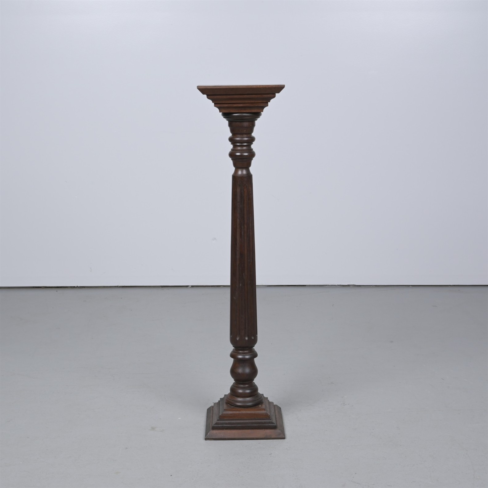 AN EARLY 20th CENTURY HARDWOOD PEDESTAL (117CM H X 28CM W X 28CM D)