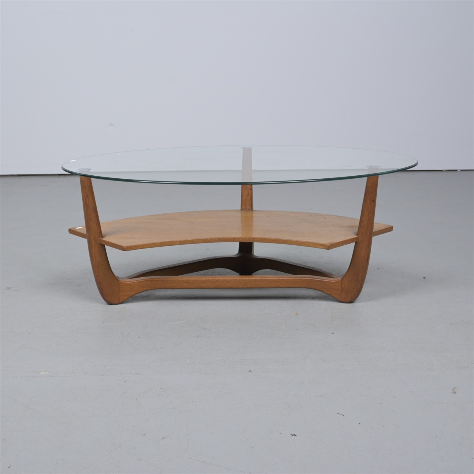 A MID-20th CENTURY TEAK AND GLASS COFFEE TABLE (44CM H X 110CM W X 70CM D)
