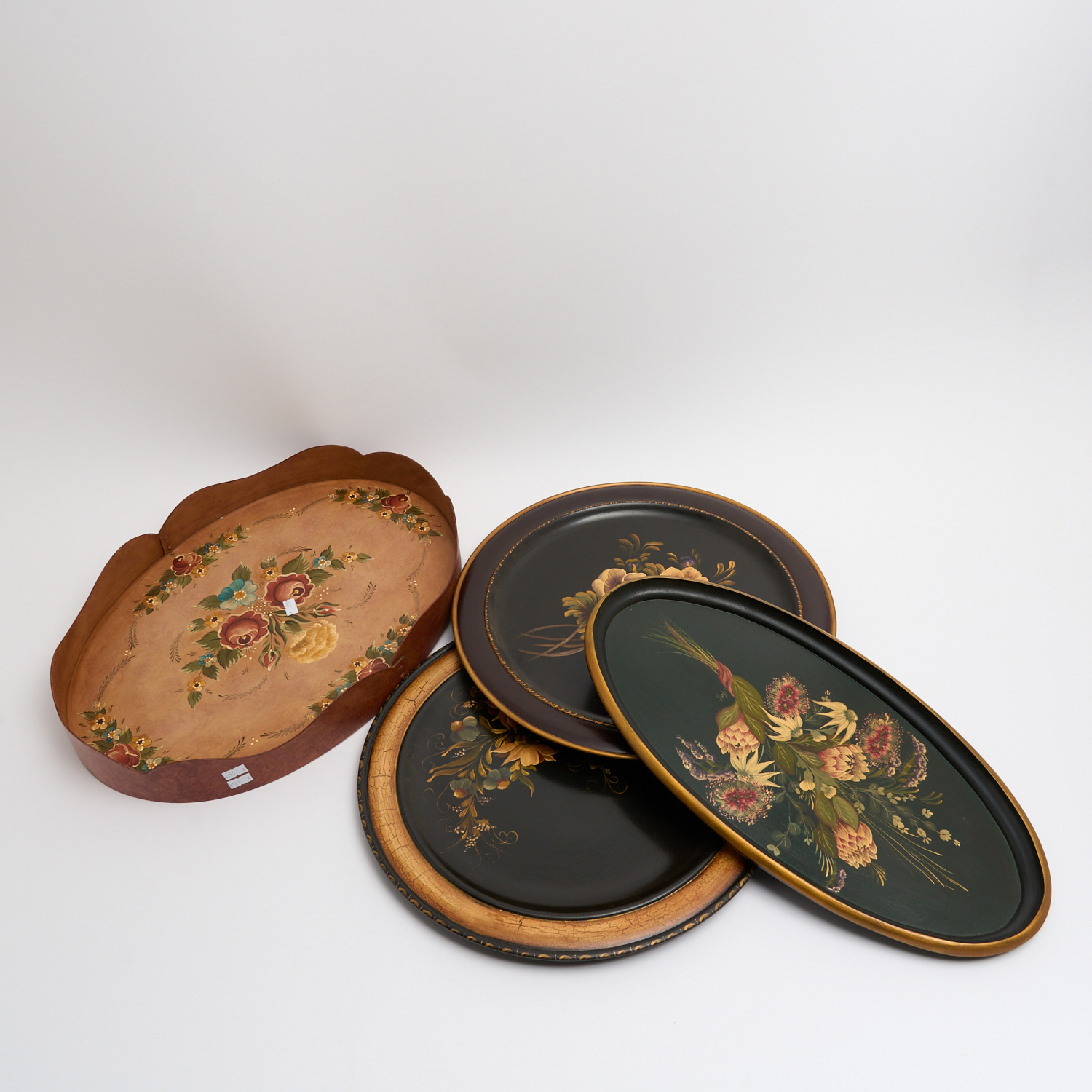 FOUR SERVING TRAYS HAND PAINTED WITH BOTANICS L.46CM