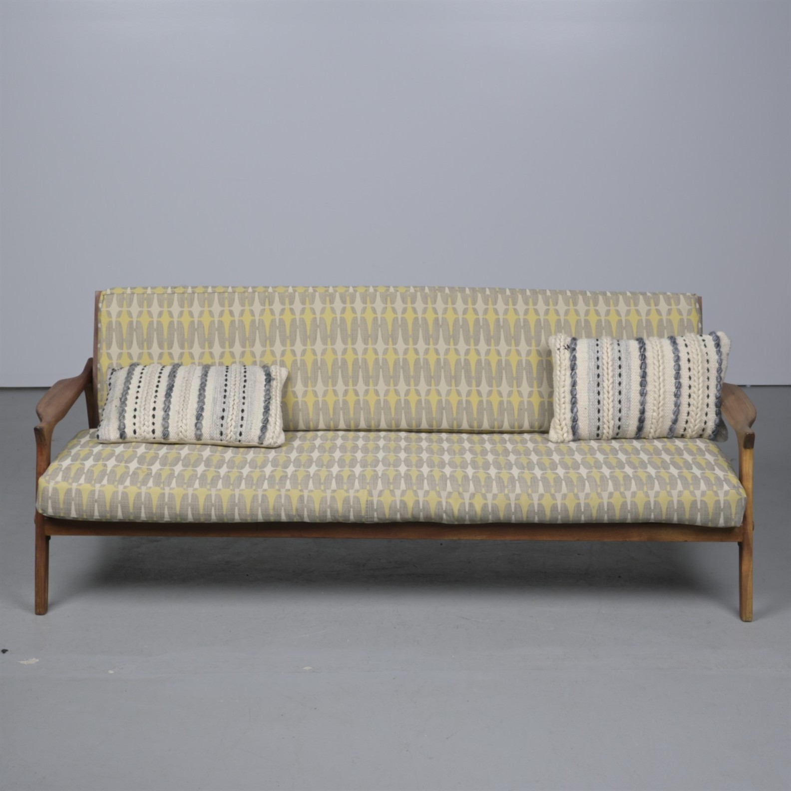 A MID-20th CENTURY TEAK SOFA BED BY DANISH DELUXE (A/F) (75H X 198W X 93D CM) (THIS ITEM MUST BE REMOVED BY PROFESSIONAL CARRIERS OR CLIENTS. LEONARD JOEL STAFF CANNOT ASSIST WITH CARRYING OR DELIVERY OF THIS ITEM)