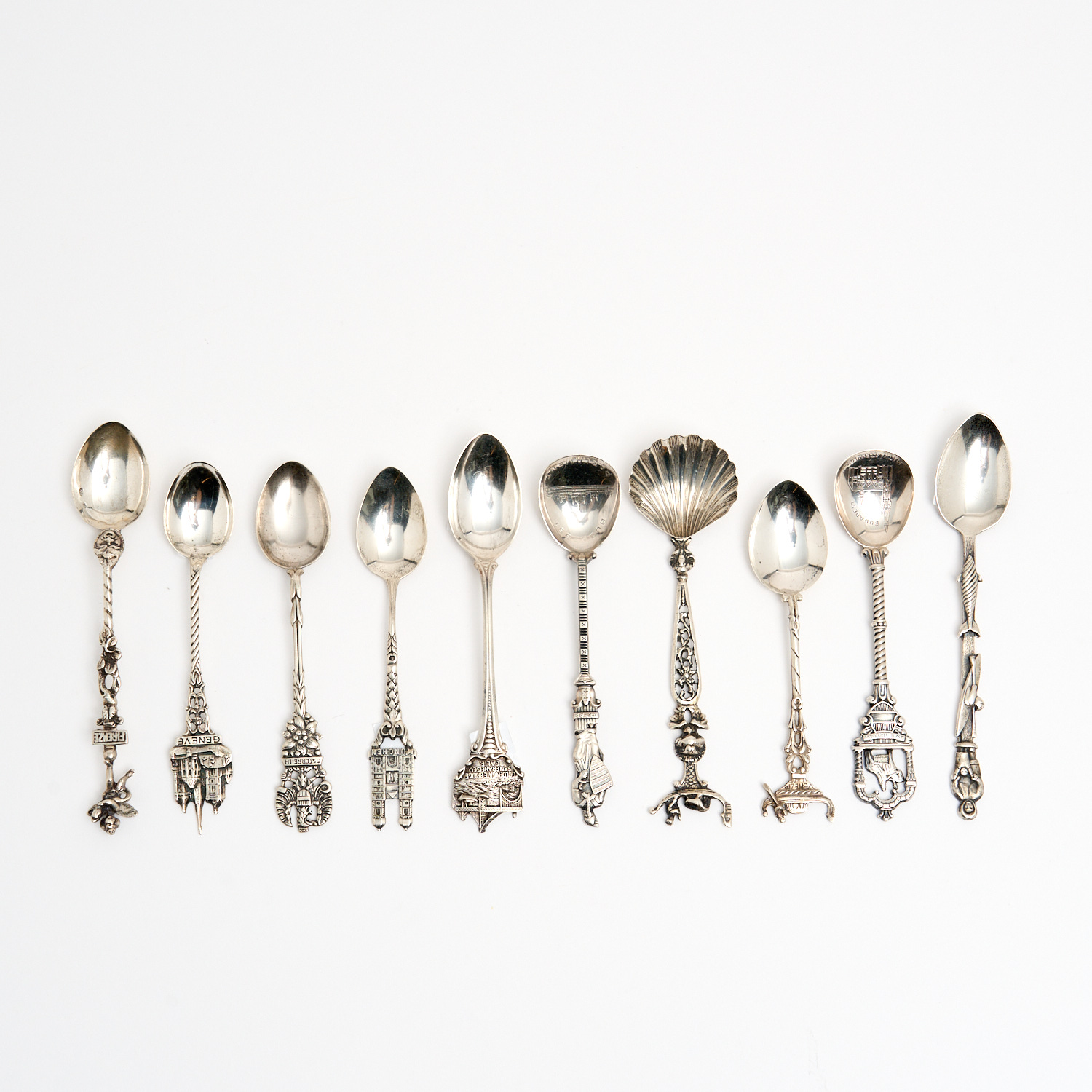 A COLLECTION OF 800 AND 925 SILVER SOUVENIR SPOONS 132G L.12.5CM