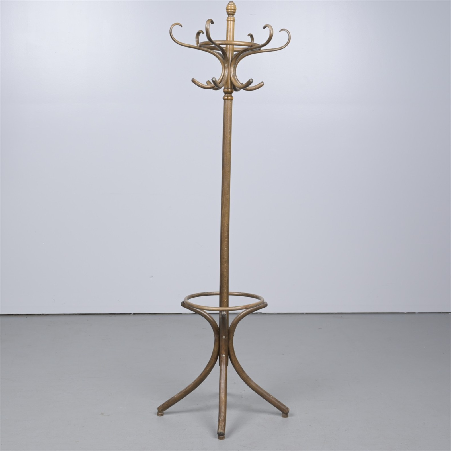 A STAINED BEECH COAT RACK (194CM H X 64CM DIA)