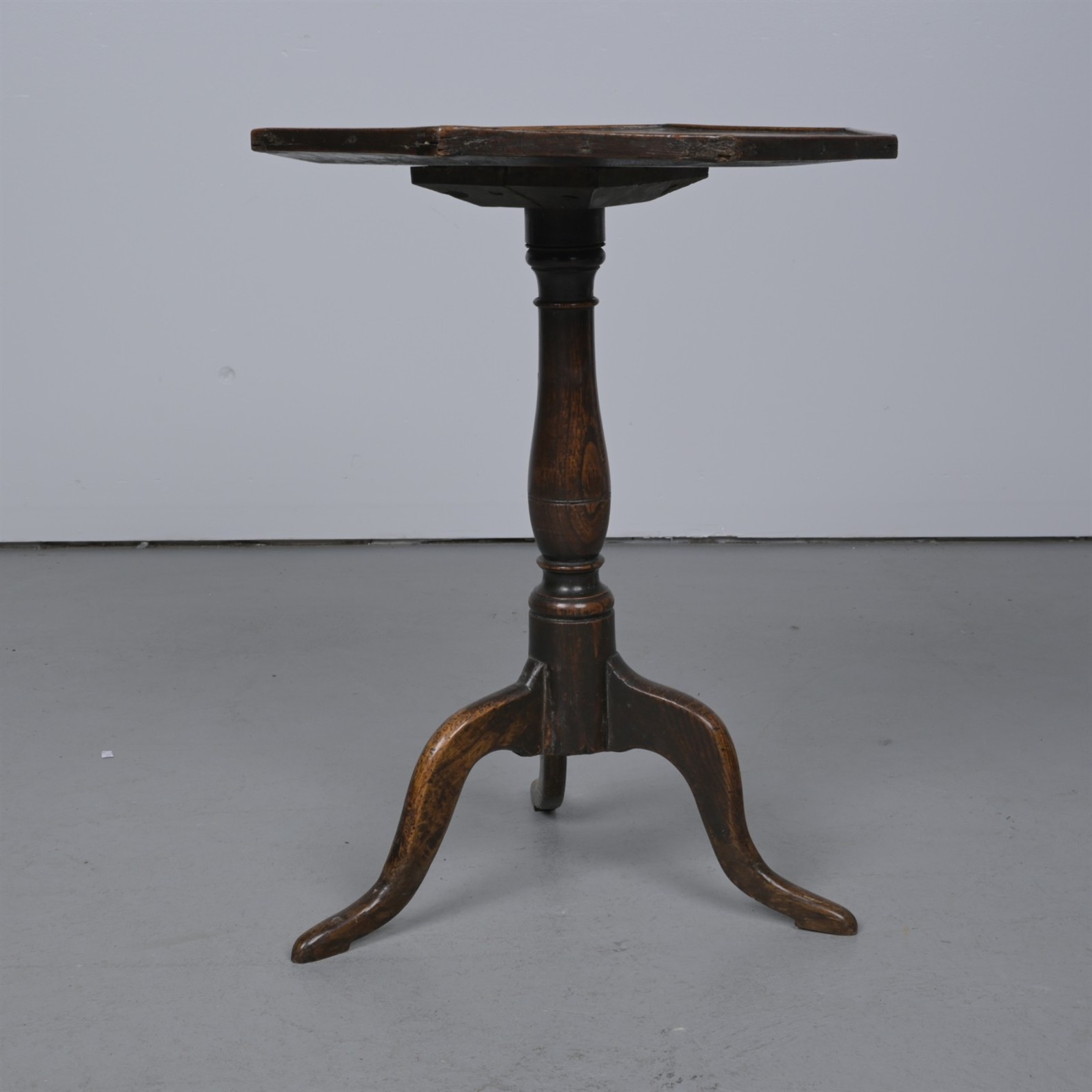 A GEORGE III ELM OCTAGONAL TRIPOD OCCASIONAL TABLE (66H X 48W X 48D CM)