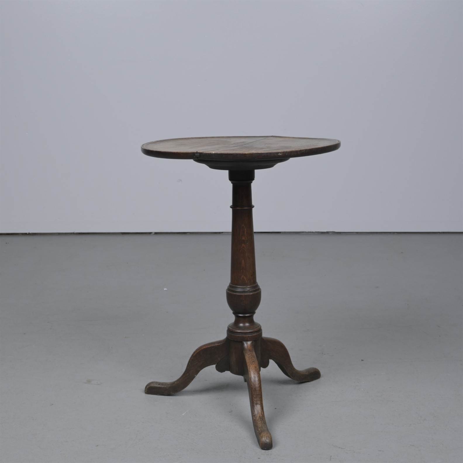 The table has a slightly loose foot to the base but is in tact, light movement. The table top is in good structural condtion with patina consistent with age.