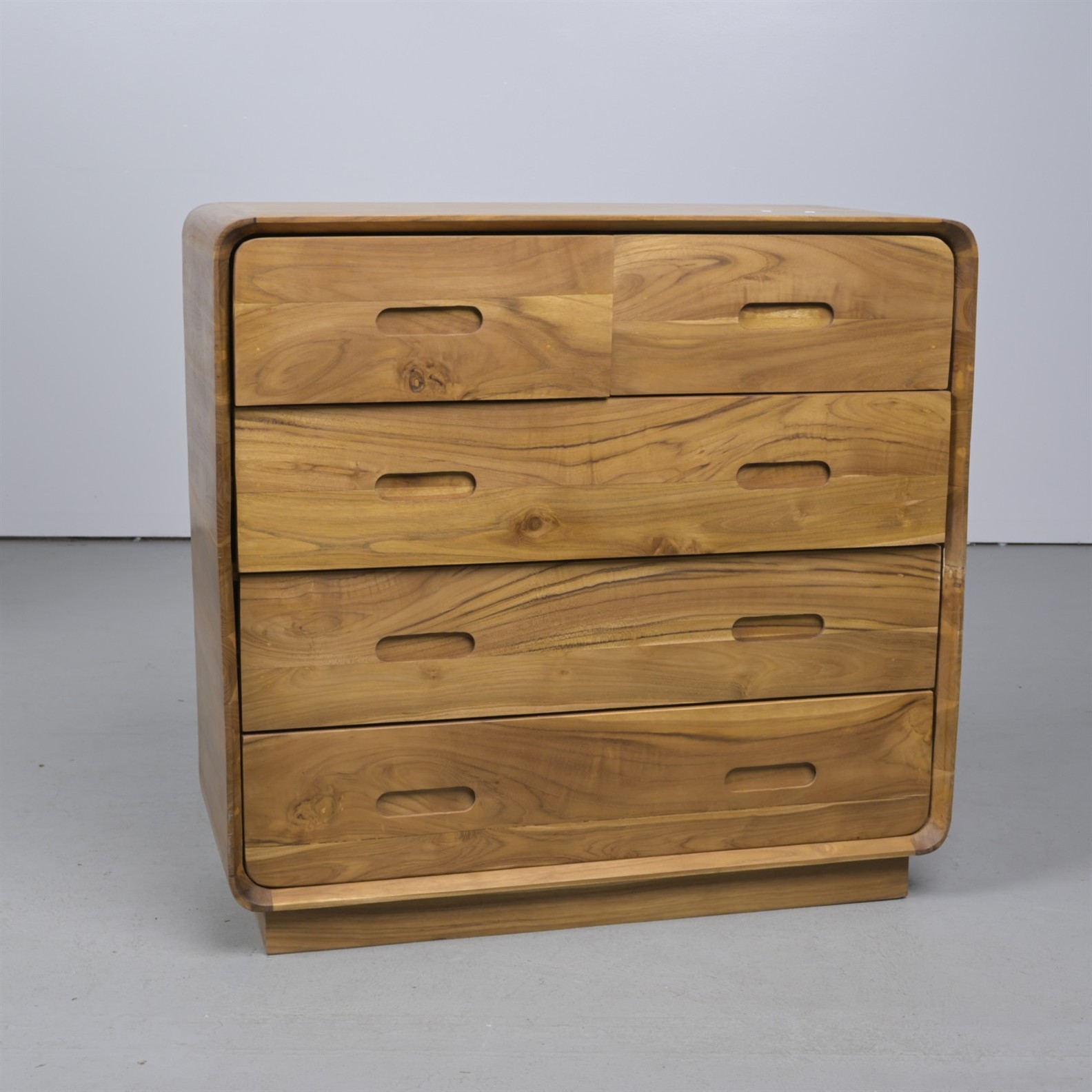 A MODERN TEAK CHEST OF DRAWERS (A/F) (87CM H X 90CM W X 40CM D) (THIS ITEM MUST BE REMOVED BY PROFESSIONAL CARRIERS OR CLIENTS. LEONARD JOEL STAFF CANNOT ASSIST WITH CARRYING OR DELIVERY OF THIS ITEM)