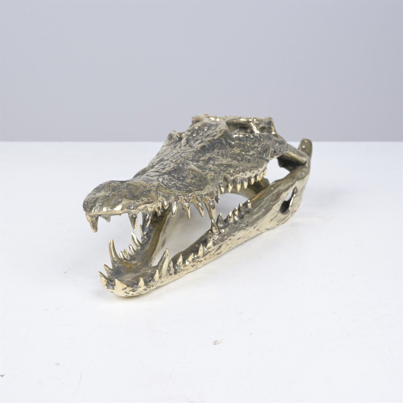 A BRASS CROCODILE SKULL (12CM H X 37CM L)