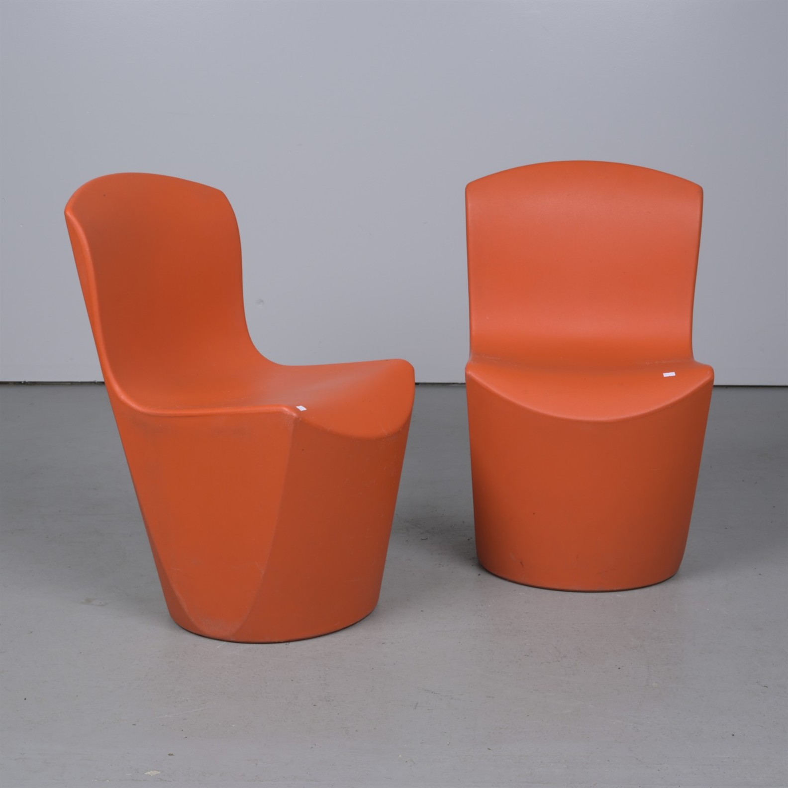 A PAIR OF ORANGE ITALIAN SLIDE 'ZOE' CHAIRS BY GUGLIELMO BERCHICCI (82H X 51W X 47D CM)