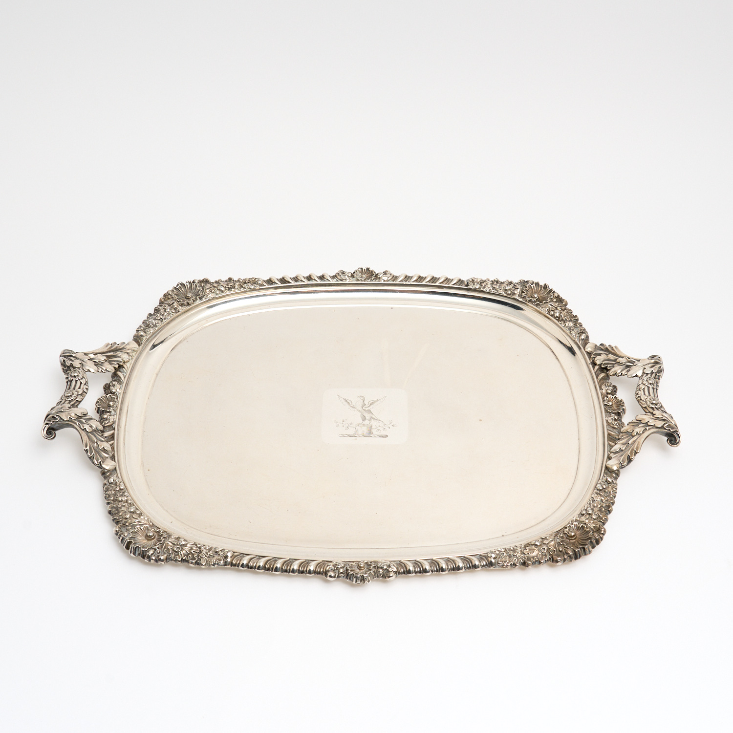 A VICTORIAN SILVER PLATE TRAY IN GEORGE III STYLE L.52CM