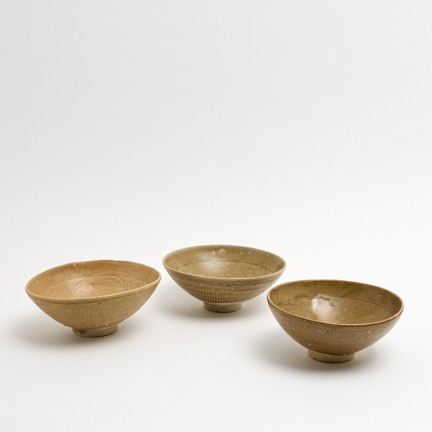 THREE CELADON BOWLS, POSSIBLY MING OR SONG DYNASTY DIA.17CM