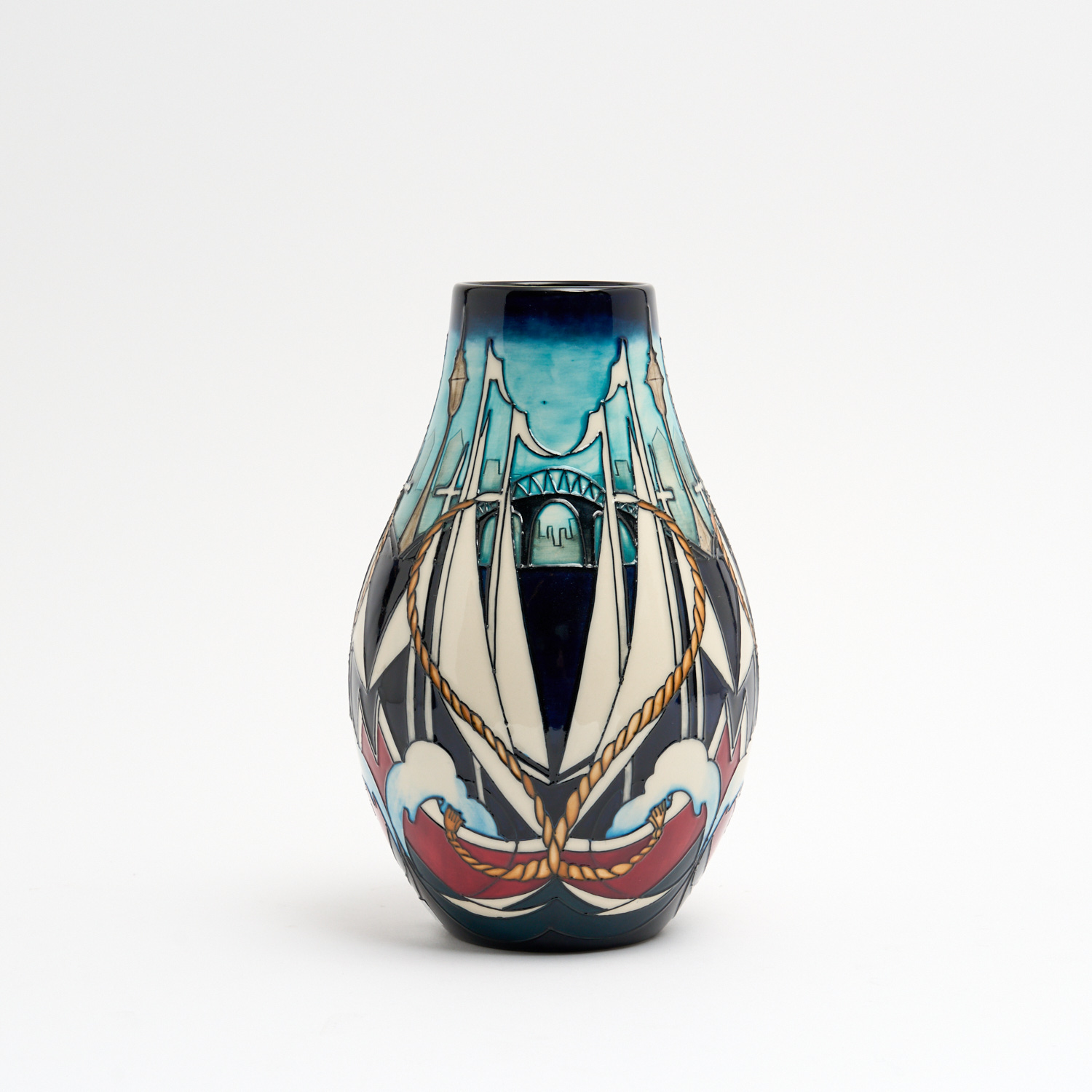 A MOORCROFT SAILS OF AUCKLAND PATTERN VASE, EDITIONED 25/75, IN ORIGINAL BOX H.24CM