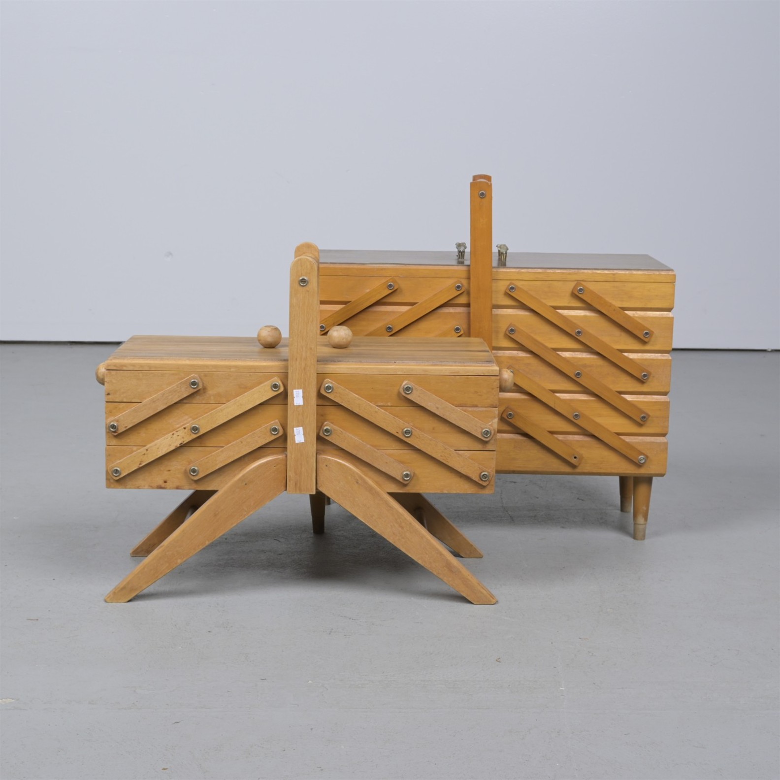 TWO MID-20th CENTURY TEAK SEWING BOXES (60CM H X 61CM W X 27CM D)