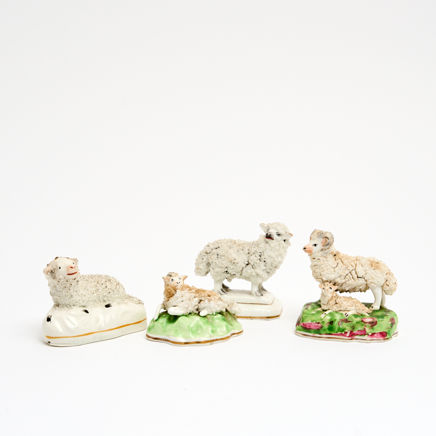 A GROUP OF FOUR 19TH CENTURY STAFFORDSHIRE SHEEP (A/F) L.8.5CM