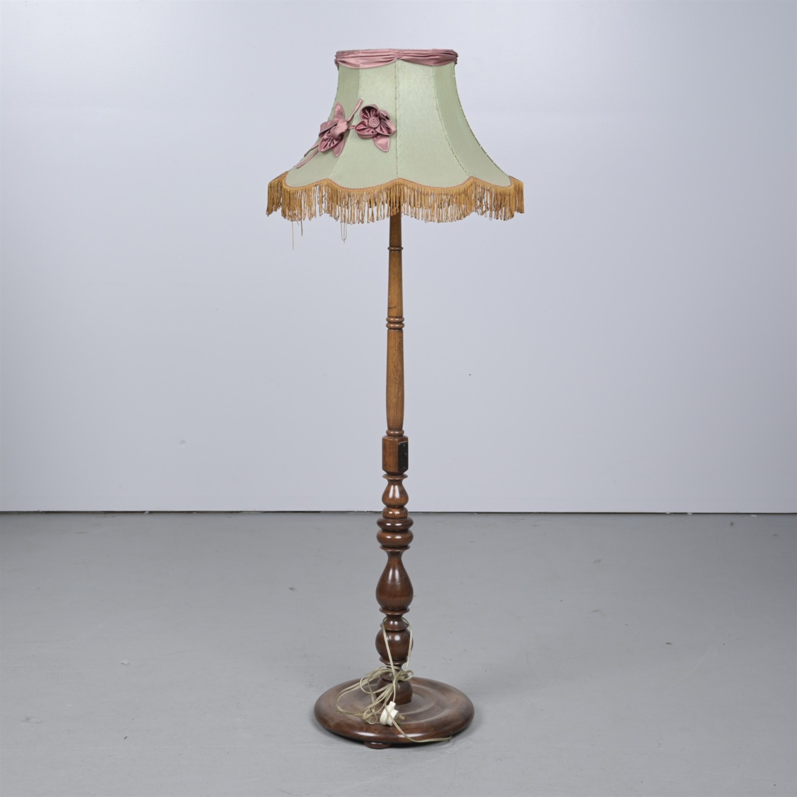 AN EARLY 20th CENTURY MAHOGANY STANDARD LAMP (160CM H X 62CM DIA)