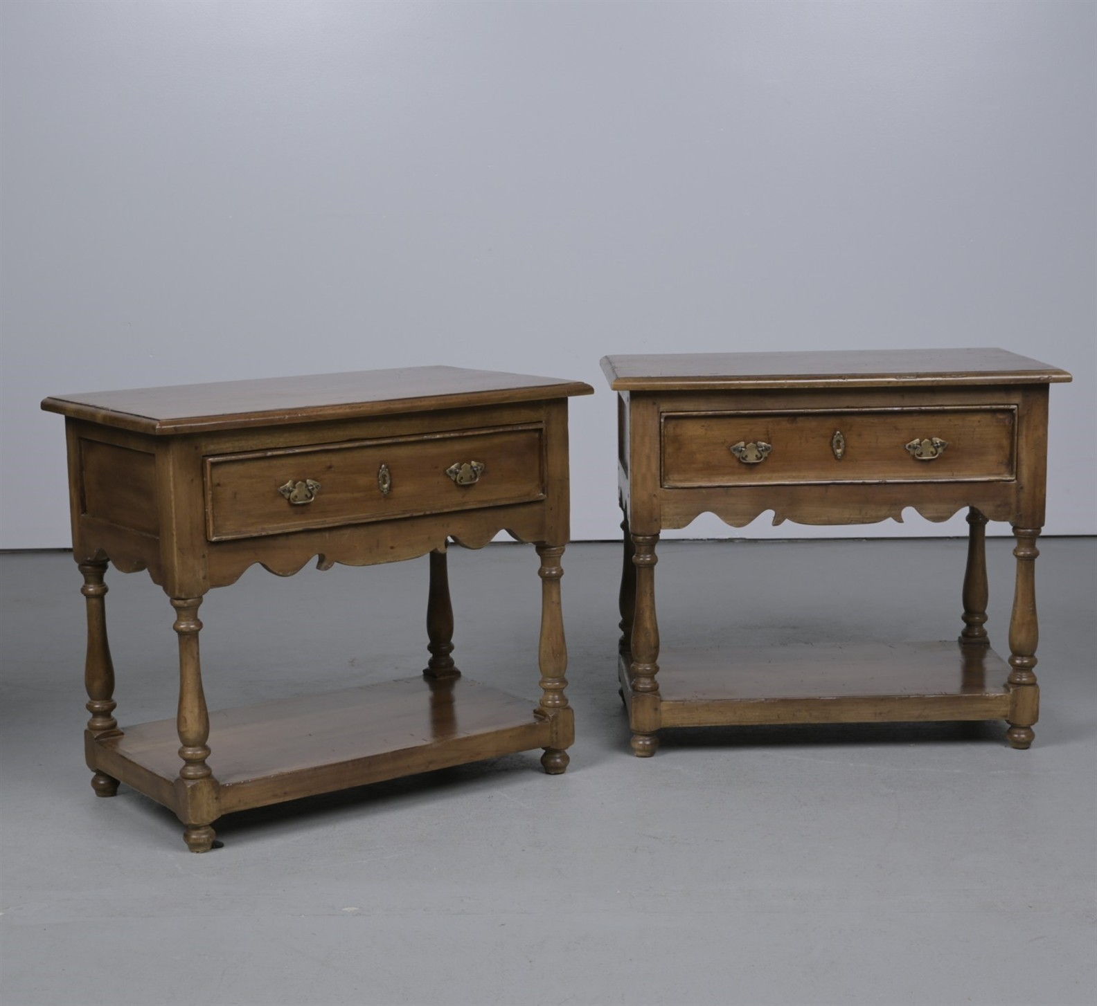 A PAIR OF HARDWOOD LOW SIDE TABLES WITH UNDERTIERS IN EARLY GEORGIAN MANNER (65CM H X 74CM WX 45CM D)