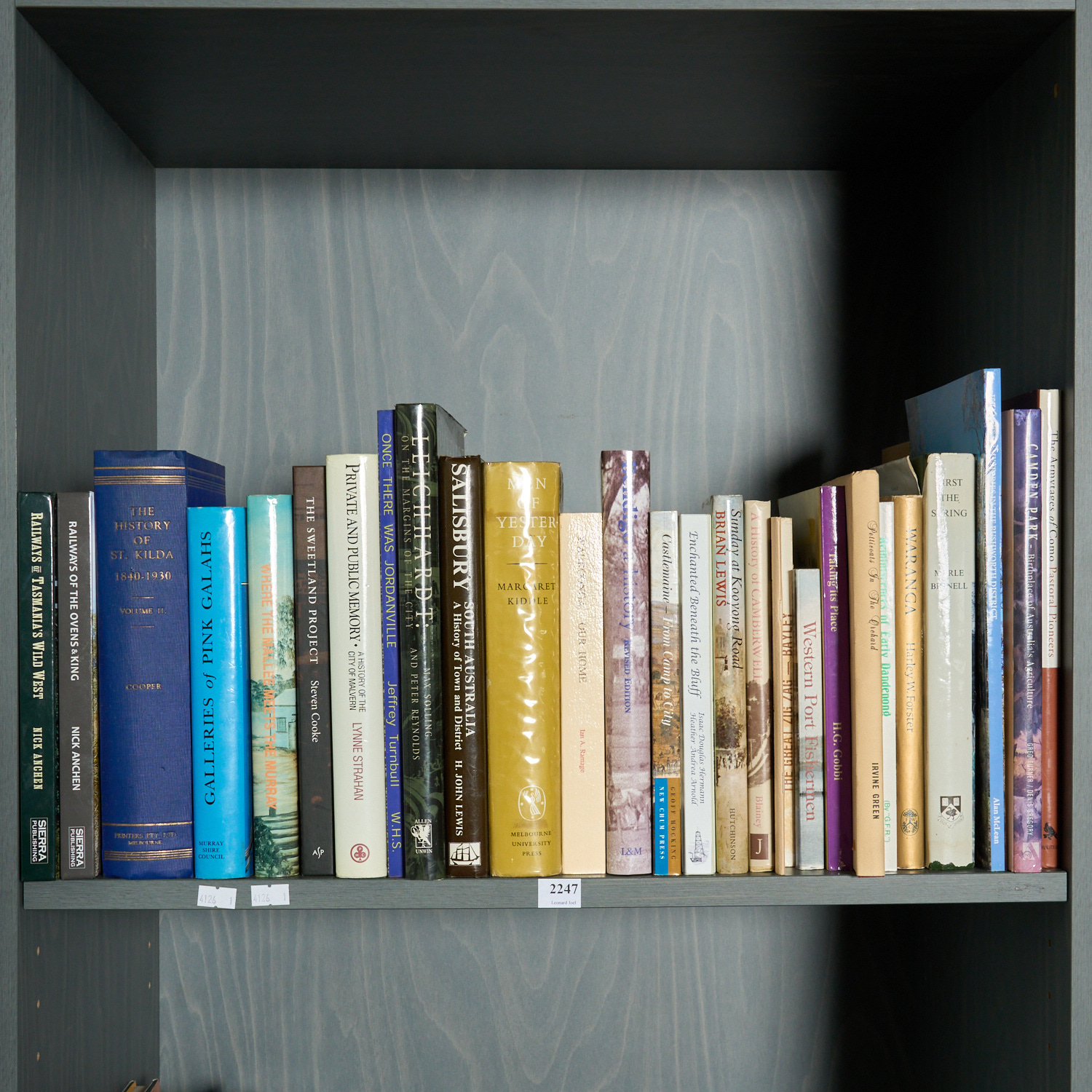 A SHELF OF LOCAL HISTORY REFERENCE BOOKS INCLUDING COOPER 'HISTORY OF ST KILDA (VOL II)', CUSACK 'BENDIGO', STRAHAN 'PRIVATE AND PUBLIC MEMORY' AND SOLING 'LEICHHARDT'