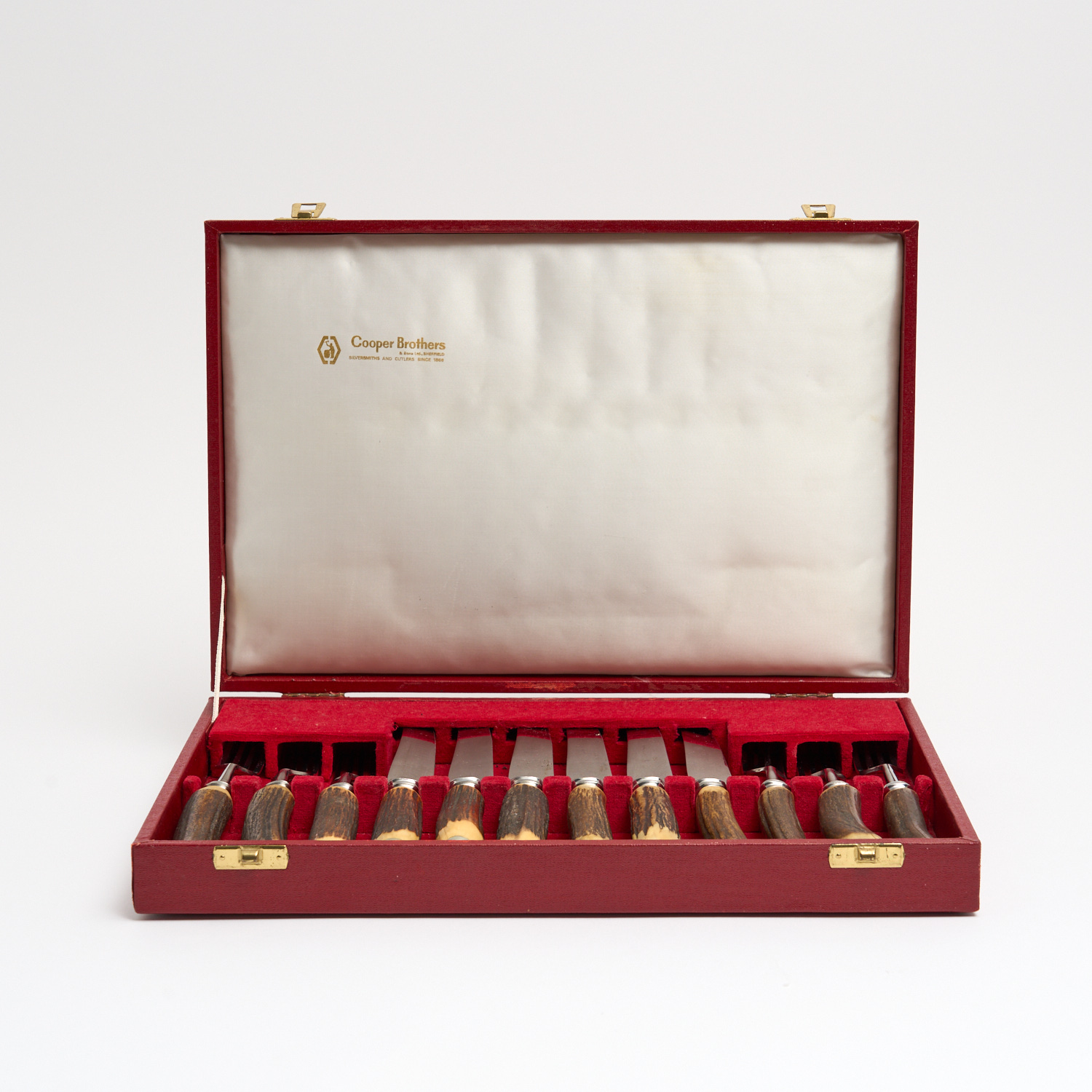A COOPER BROTHERS STAG HORN CUTERY SET FOR SIX L.34CM (CASE)