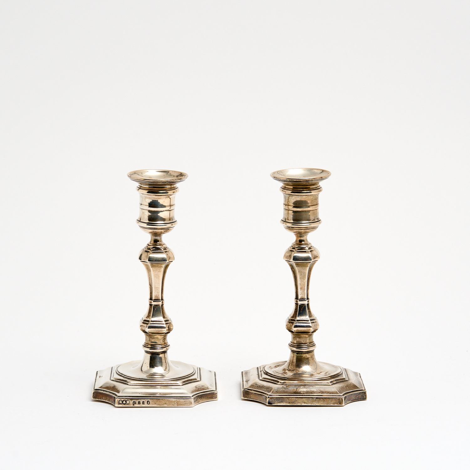 A PAIR OF STERLING SILVER WEIGHTED CANDLE STICKS, BIRMINGHAM 1934, HAWKSWORTH, EYRE & CO H.16CM