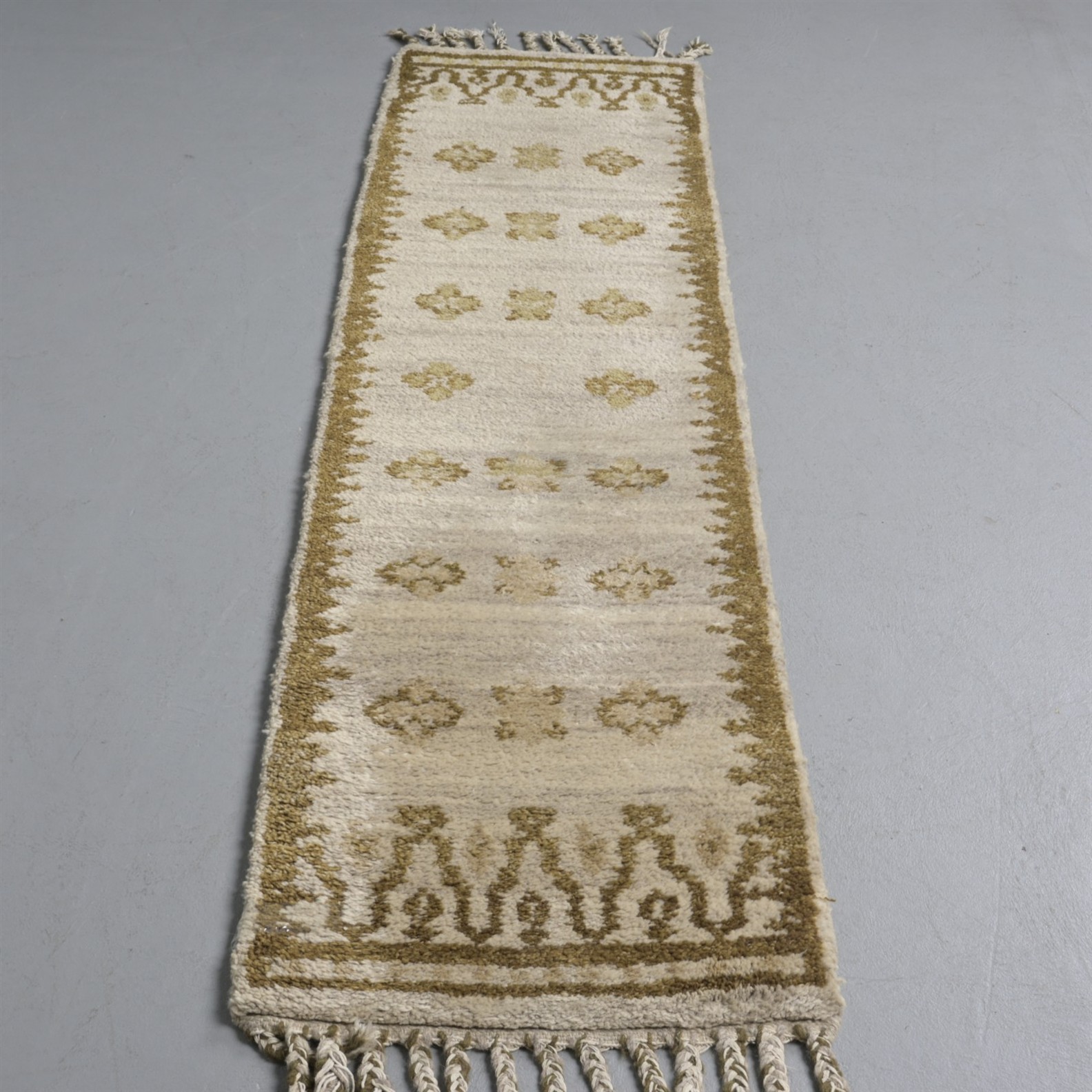A 1970'S MOROCCAN WOOLLEN RUNNER (280CM L X 63CM D)