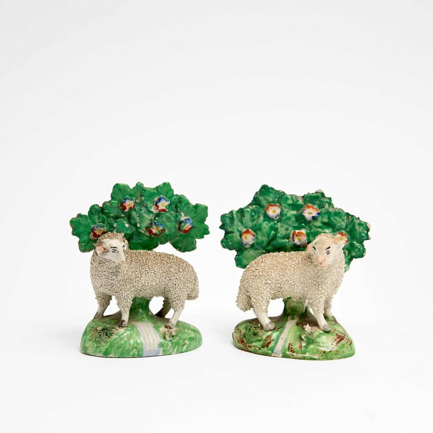 A PAIR OF 19TH CENTURY STAFFORDSHIRE SHEEP H.12.5CM
