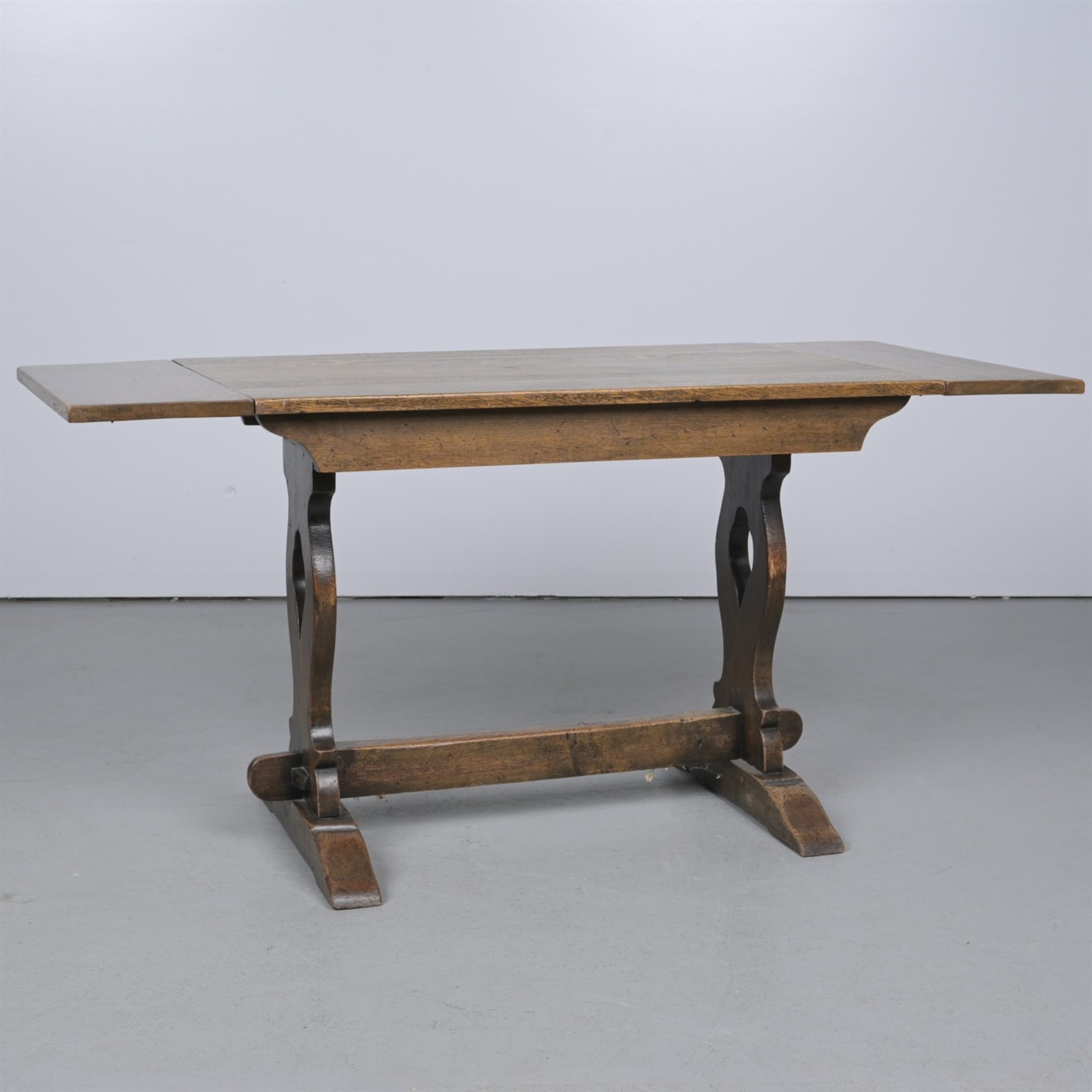 AN EARLY 20th CENTURY ARTS AND CRAFTS OAK DROP-LEAF TABLE (76CM H X 157CM W X 67CM D) (THIS ITEM MUST BE REMOVED BY PROFESSIONAL CARRIERS OR CLIENTS. LEONARD JOEL STAFF CANNOT ASSIST WITH CARRYING OR DELIVERY OF THIS ITEM)