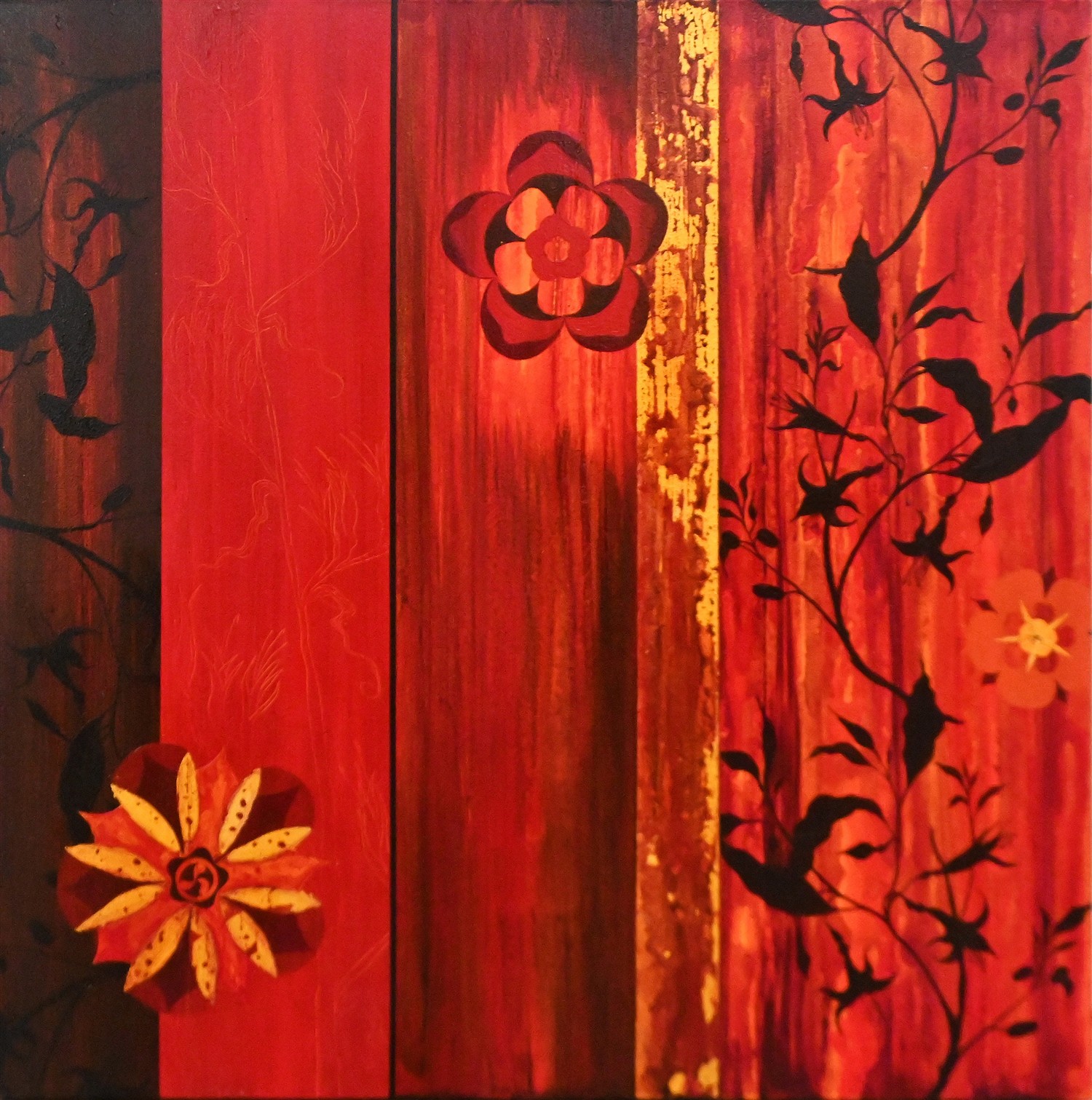 ACRYLIC AND GOLD LEAF ON CANVAS, SIGNED AND DATED LOWER RIGHT, 80 X 80CM