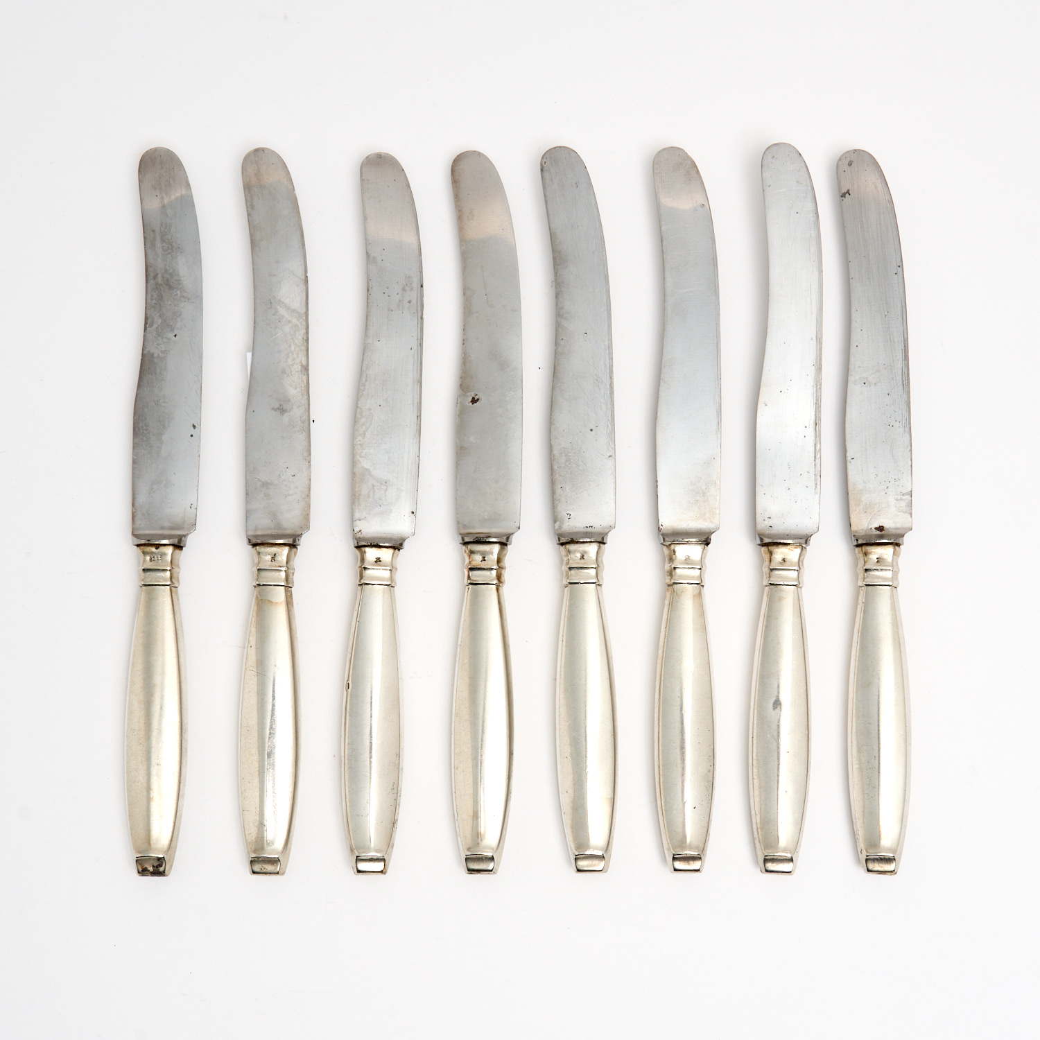 A SET OF EIGHT 835 GERMAN SILVER HANDLED ENTREE KNIVES L.22CM