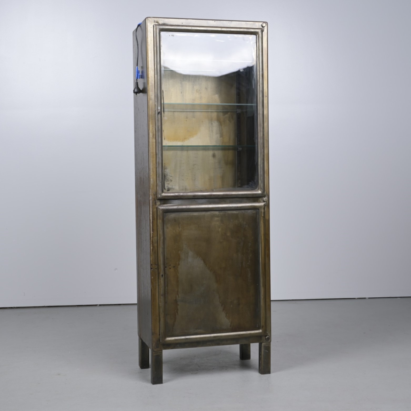 AN INDUSTRIAL METAL DISPLAY CABINET (173CM H X 60CM W X 37CM D) (THIS ITEM MUST BE REMOVED BY PROFESSIONAL CARRIERS OR CLIENTS. LEONARD JOEL STAFF CANNOT ASSIST WITH CARRYING OR DELIVERY OF THIS ITEM)