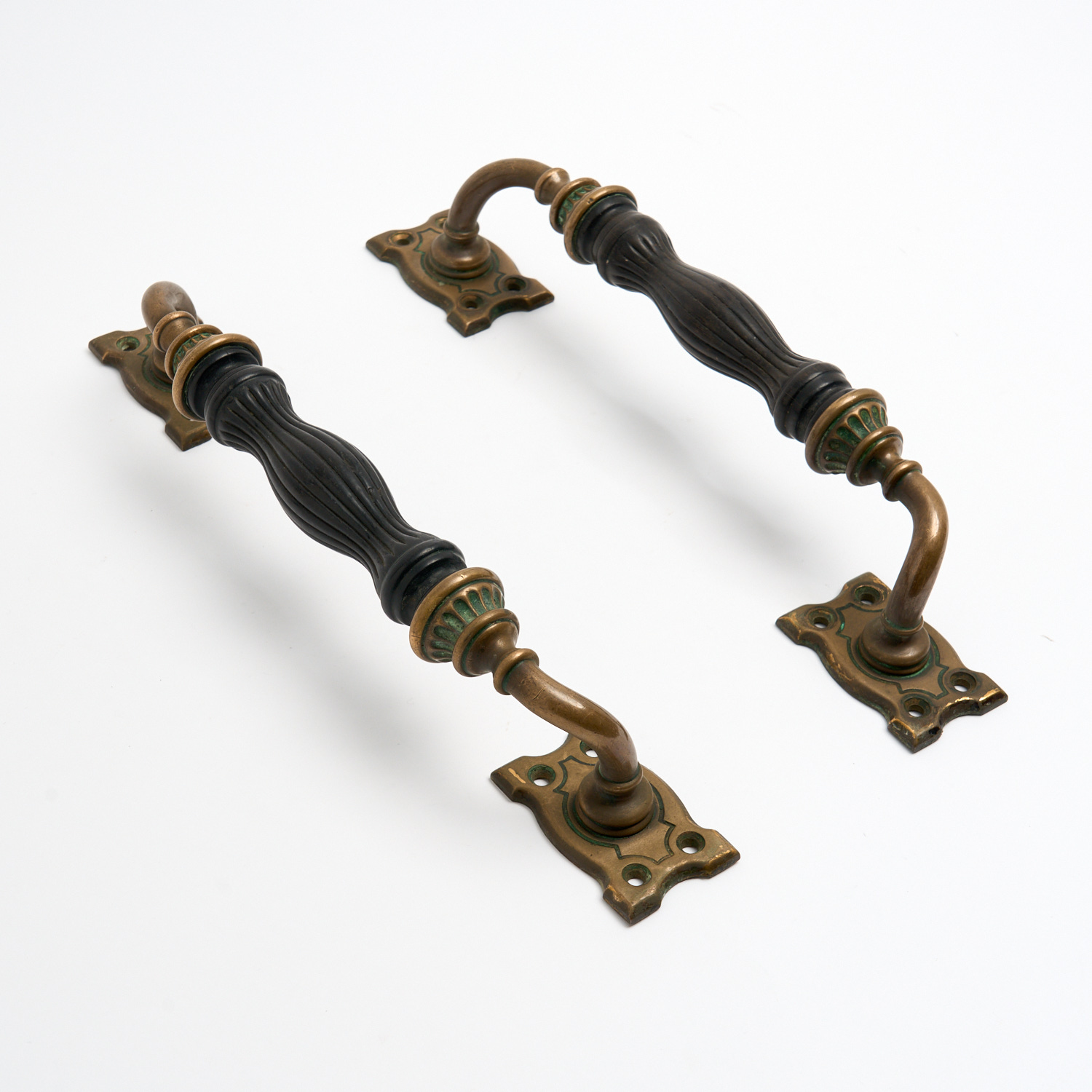 A PAIR OF EBONY DOOR HANDLE PULLS L.37CM